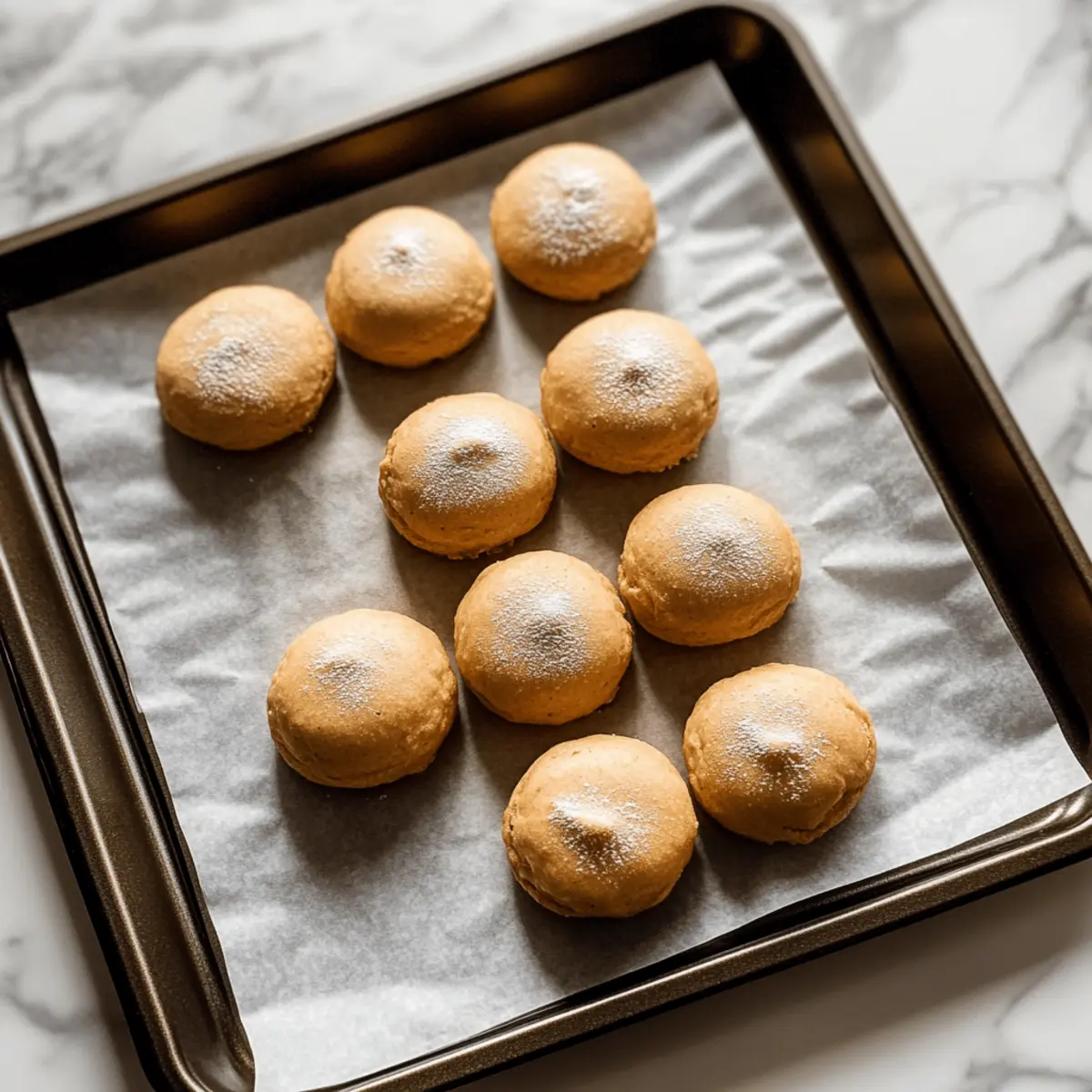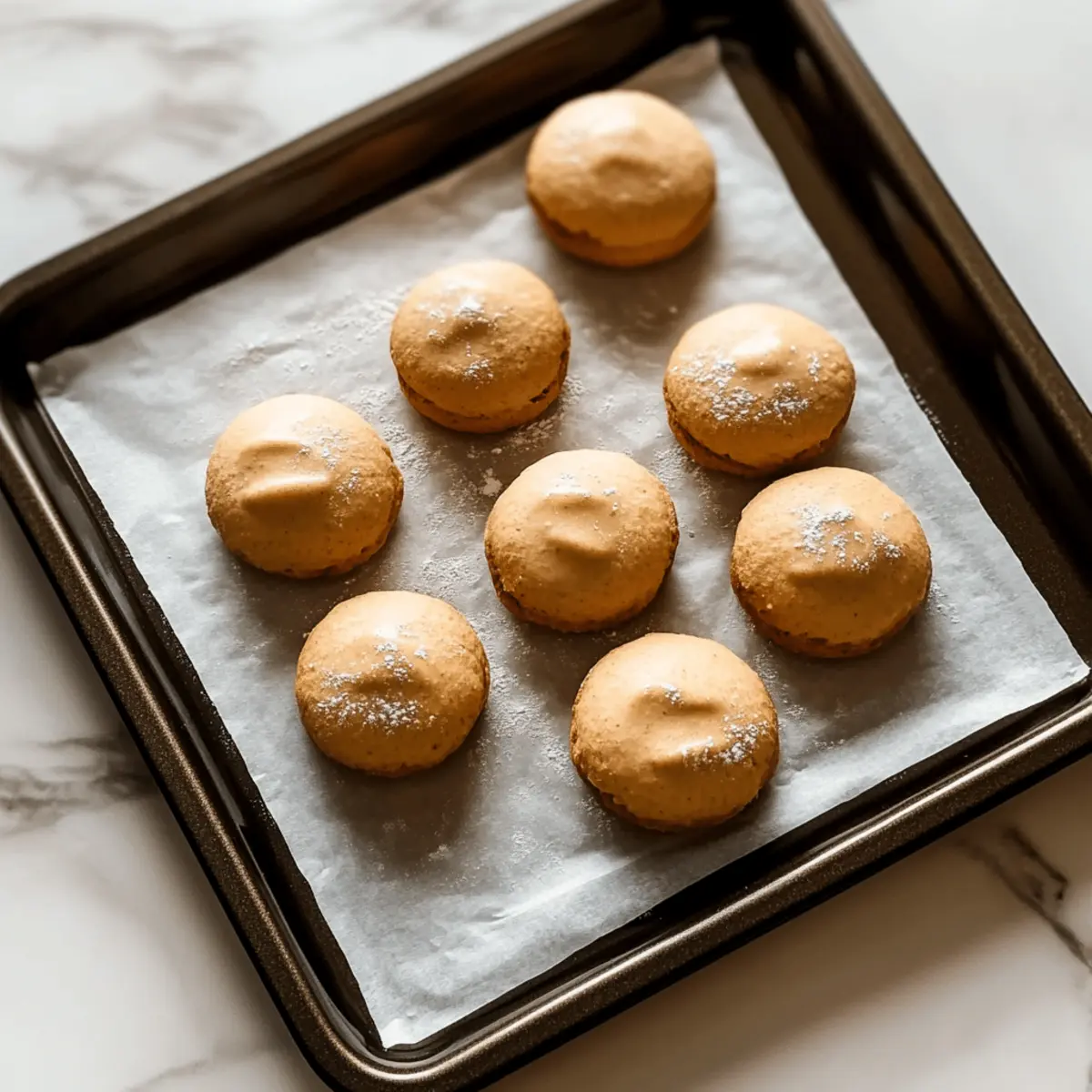 Preheat your oven to 350°F (175°C) and line baking sheets with parchment paper. Using a tablespoon, drop rounded mounds of dough onto the prepared sheets, leaving about 2 inches of space between each. Bake for 10-12 minutes, or until the cookies are set and lightly golden. Once baked, transfer them to a wire rack to cool completely before assembling.