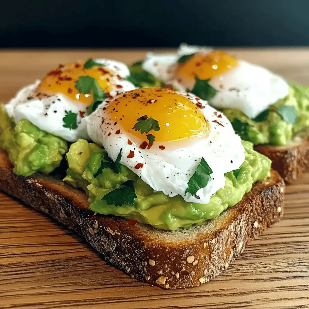Remove the toasted bread and spread the creamy avocado mixture generously over each slice. Top each piece with a perfectly poached egg, letting the warm yolk add richness. Sprinkle some red pepper flakes on top for a hint of spice, and add fresh herbs like cilantro or parsley for a pop of color and flavor. Serve your stunning Avocado Toast with Poached Egg immediately.