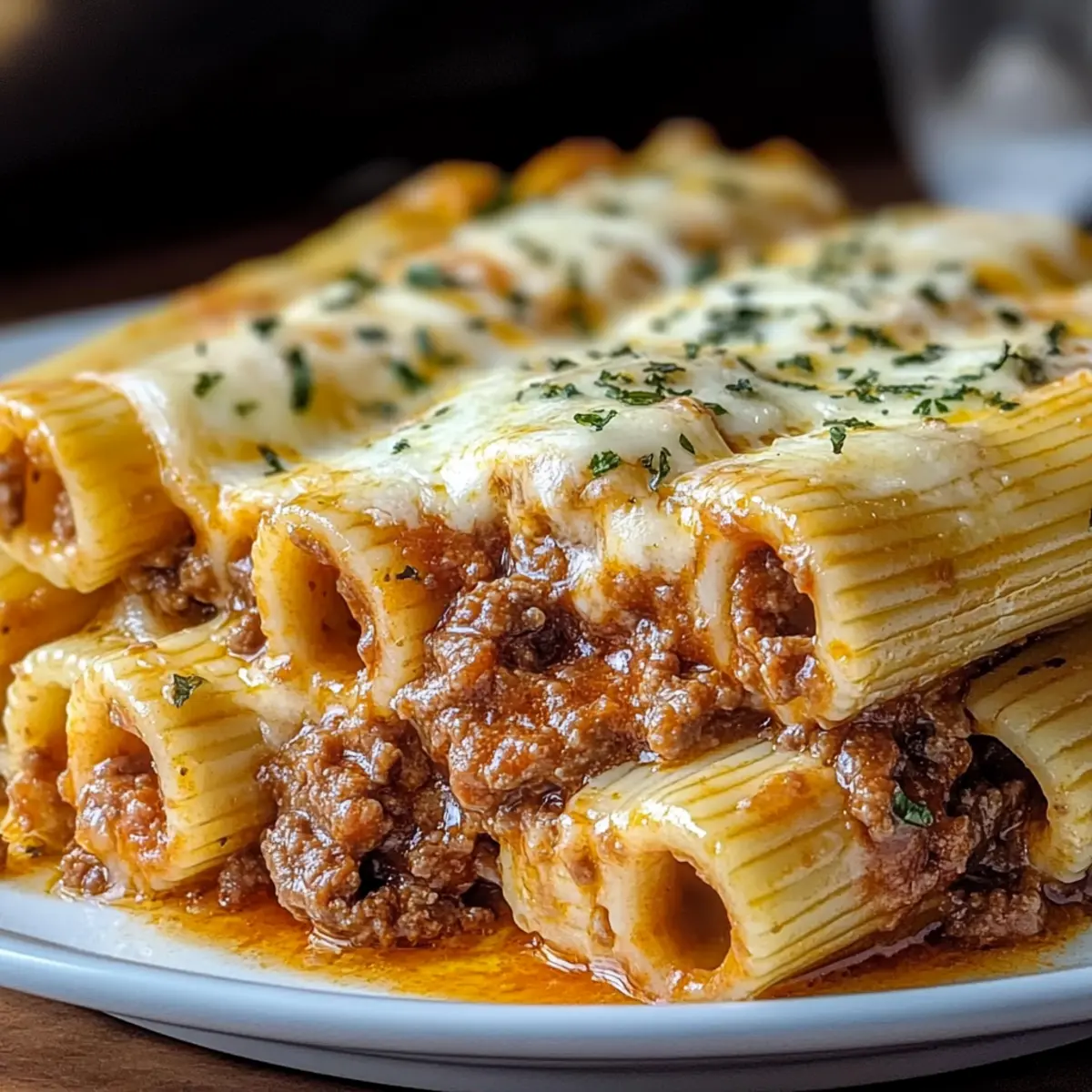 - Stuff the Rigatoni: Preheat oven to 375°F (190°C). Stuff each rigatoni with the beef ragu mixture and arrange in a greased baking dish.