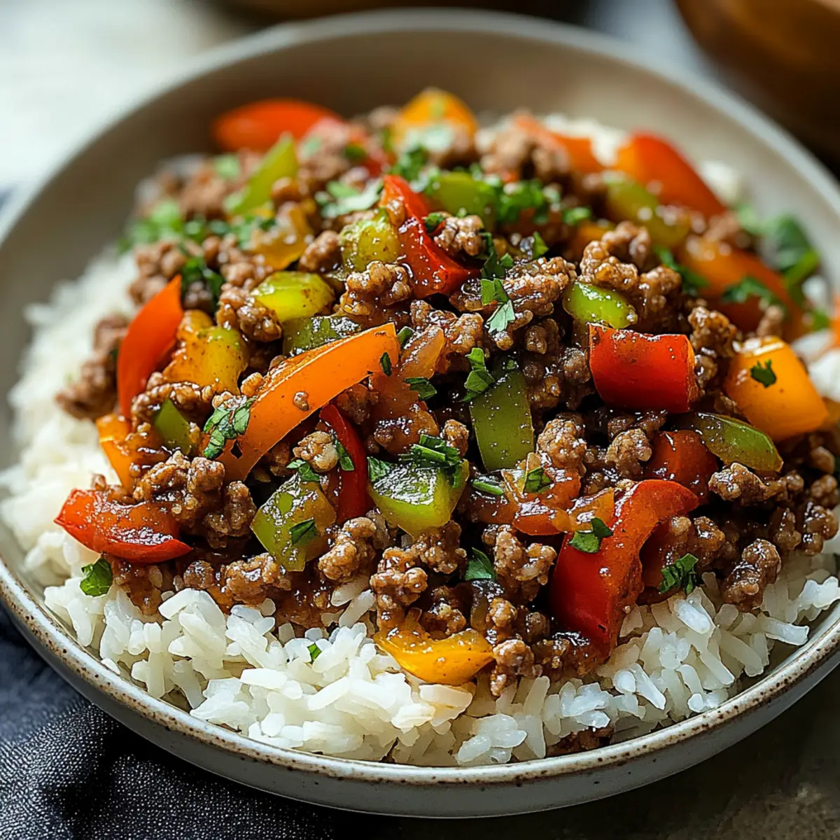Comfort in Every Bite: This Beef and Pepper Rice Bowl is packed with delicious flavors that invoke a sense of warmth and nostalgia. Quick and Easy: With a cooking time of under 30 minutes, it’s perfect for busy weeknights. Customizable Delight: Swap out ingredients to suit your dietary needs, like using ground turkey for a leaner twist. Kid-Friendly Option: The mild spice and colorful veggies make it a hit for all ages. Meal Prep Friendly: Make a big batch and enjoy leftovers throughout the week! With options like pairing it with a fresh side salad or even a bowl of Caramelized Pulled Beef, you’ll have a satisfying meal ready that is both versatile and wholesome.