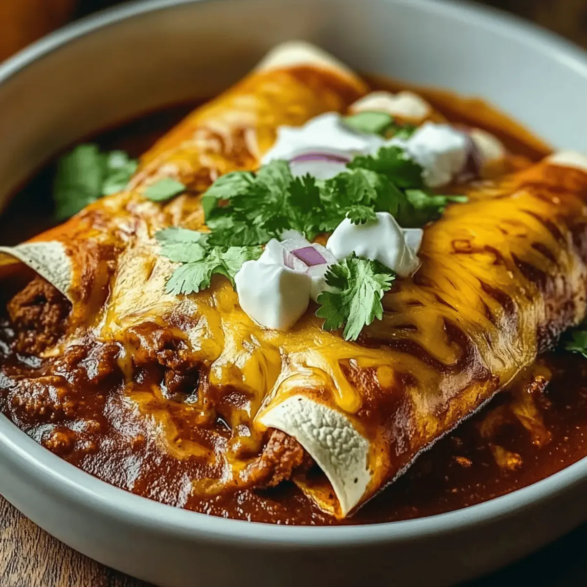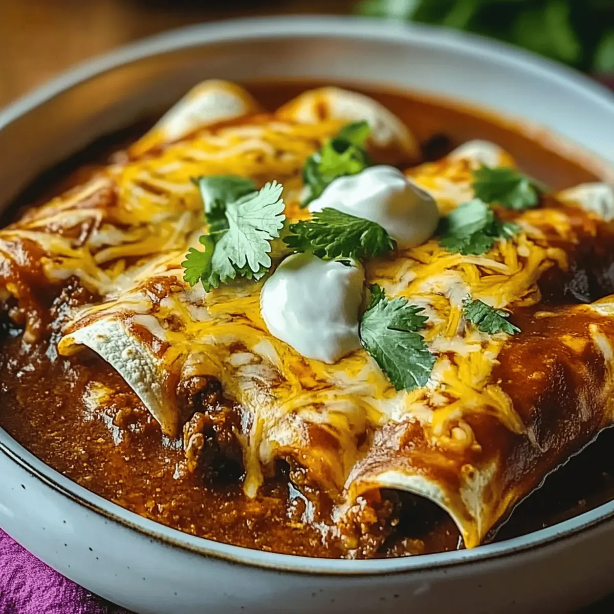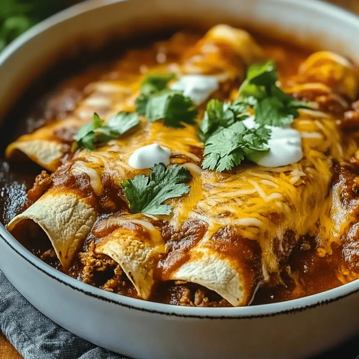- Assemble Enchiladas: Place shredded beef on each tortilla, roll tightly, and place seam-side down in a greased baking dish.