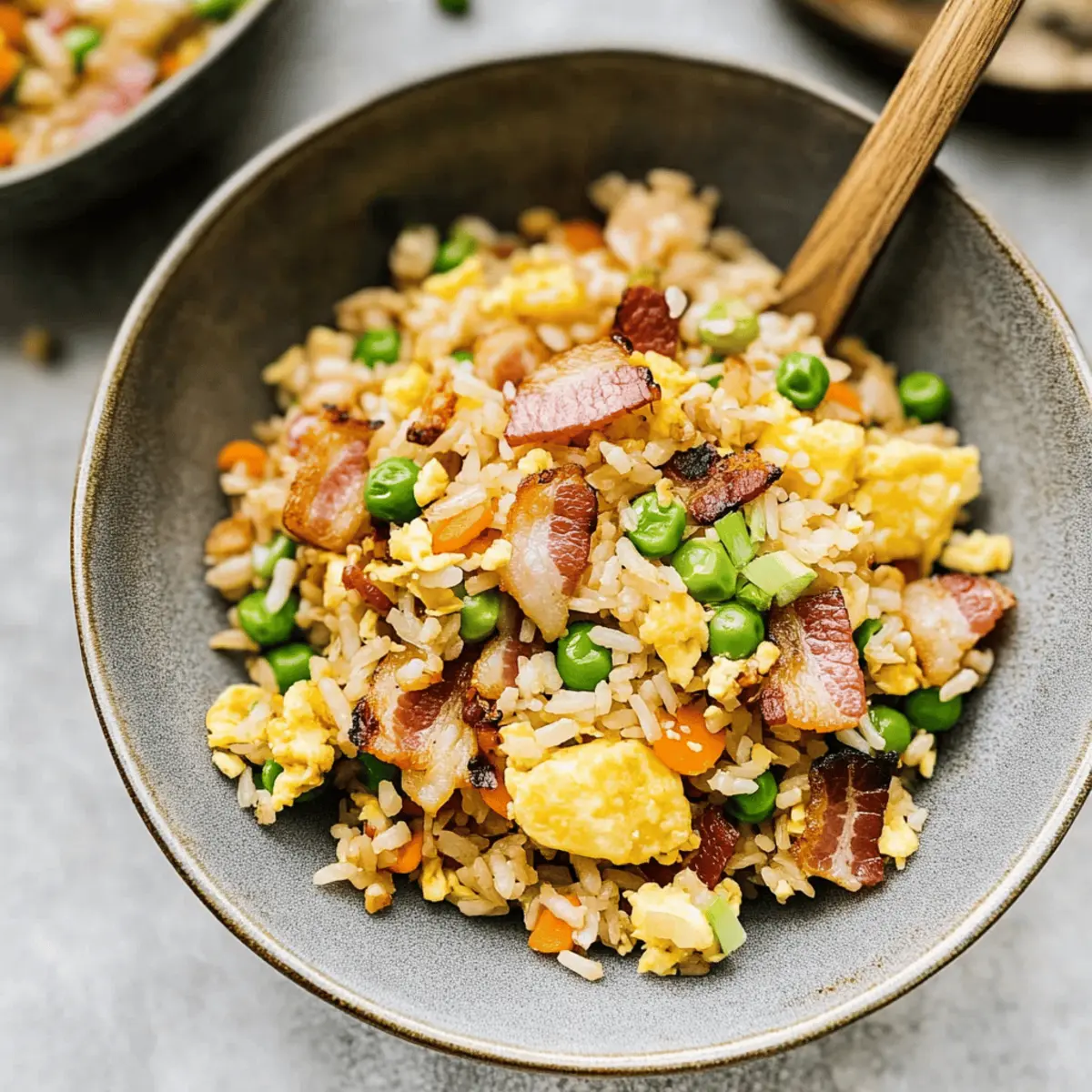 Flavors That Excite: This dish bursts with savory goodness from crispy bacon and fresh vegetables, making each bite a flavorful adventure.