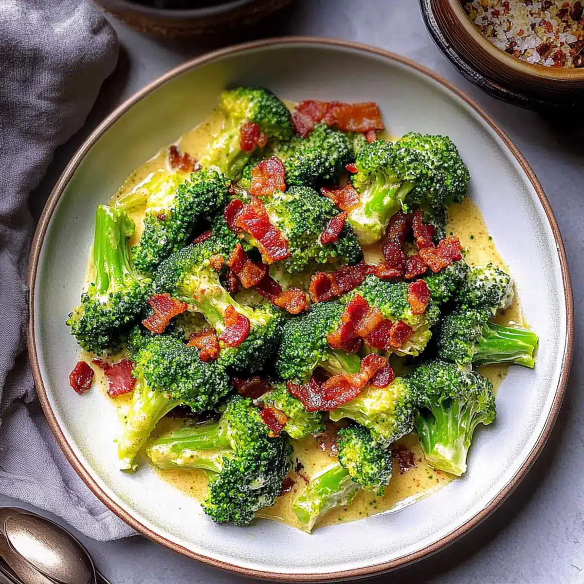 Experiment with Flavor: Feel free to add chili flakes for extra heat or a pinch of sugar for a hint of sweetness, transforming your Broccoli with Garlic Sauce & Bacon into a personalized dish.