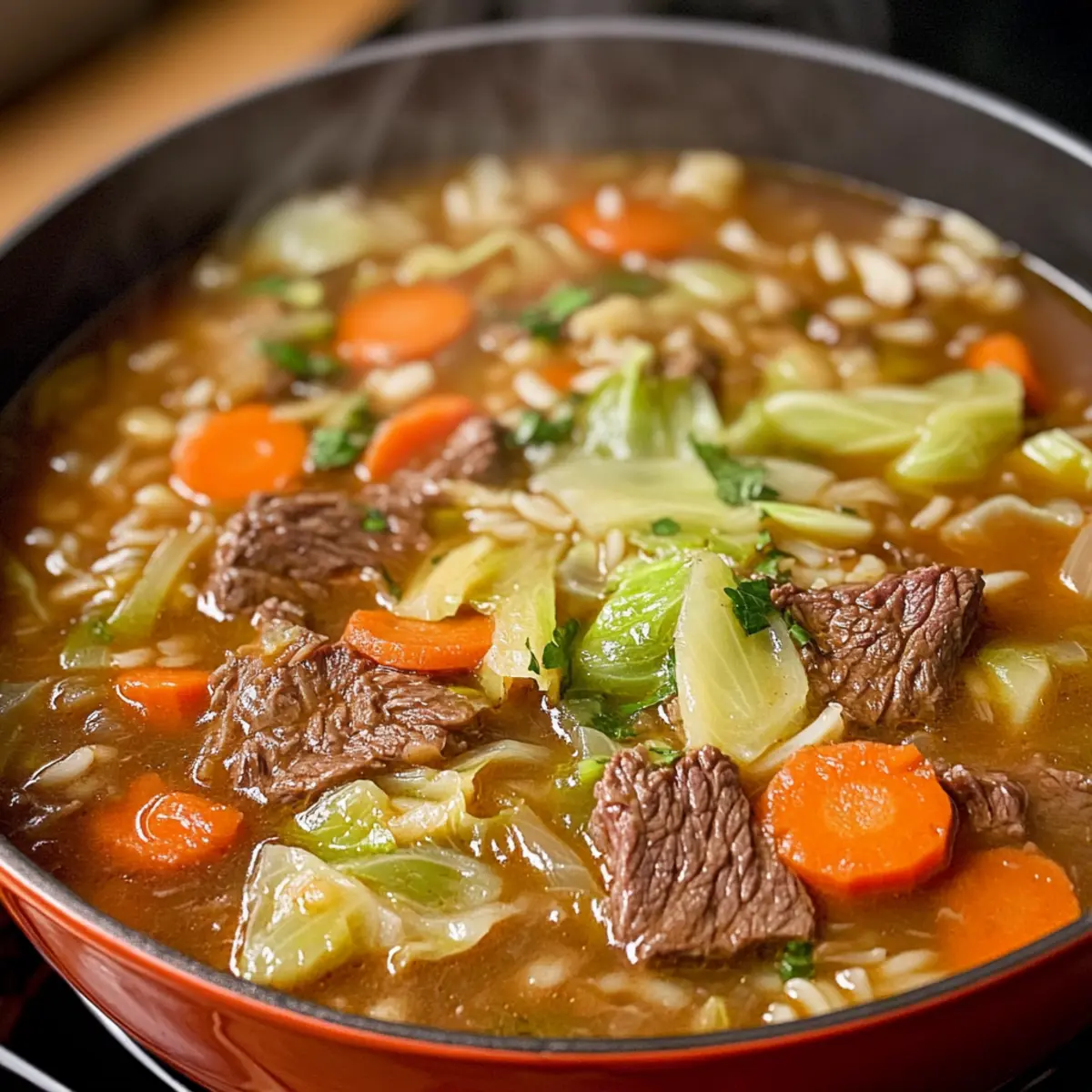 Nutrient-Packed Goodness: It’s loaded with tender beef, savory cabbage, and sweet carrots, making it not just comforting but healthy too.