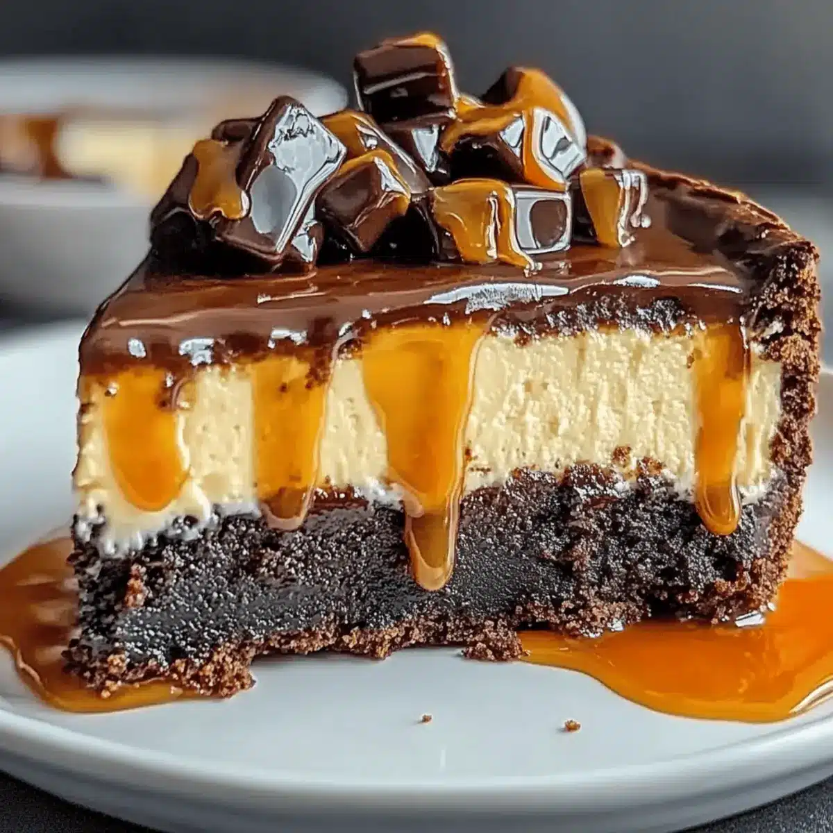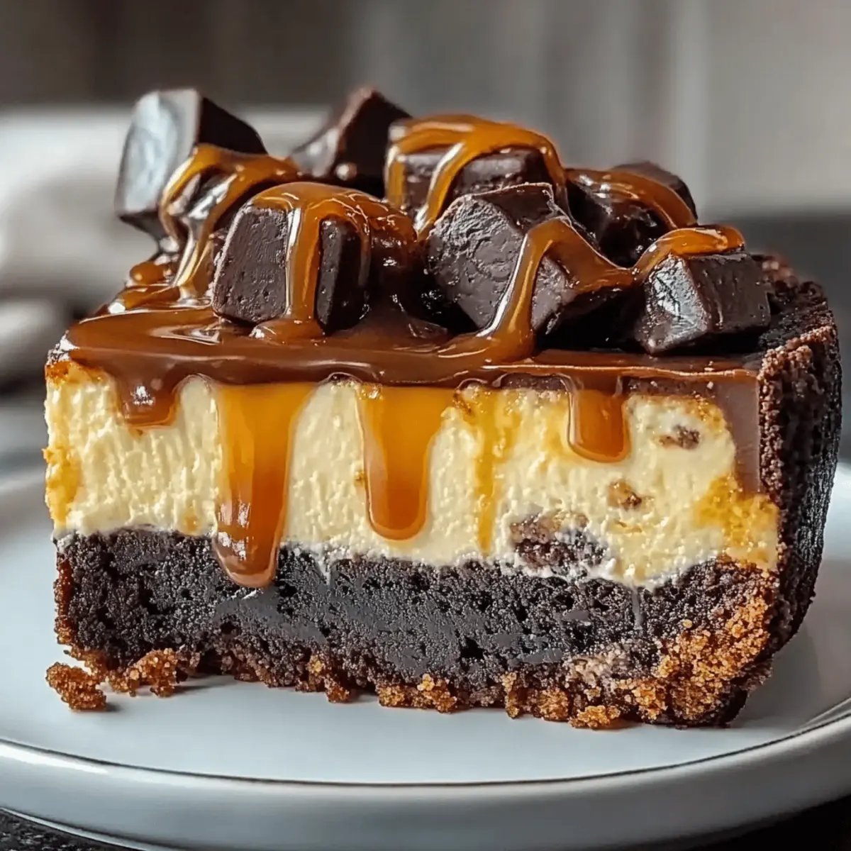 Indulge in Caramel Brownie Cheesecake Bliss Tonight