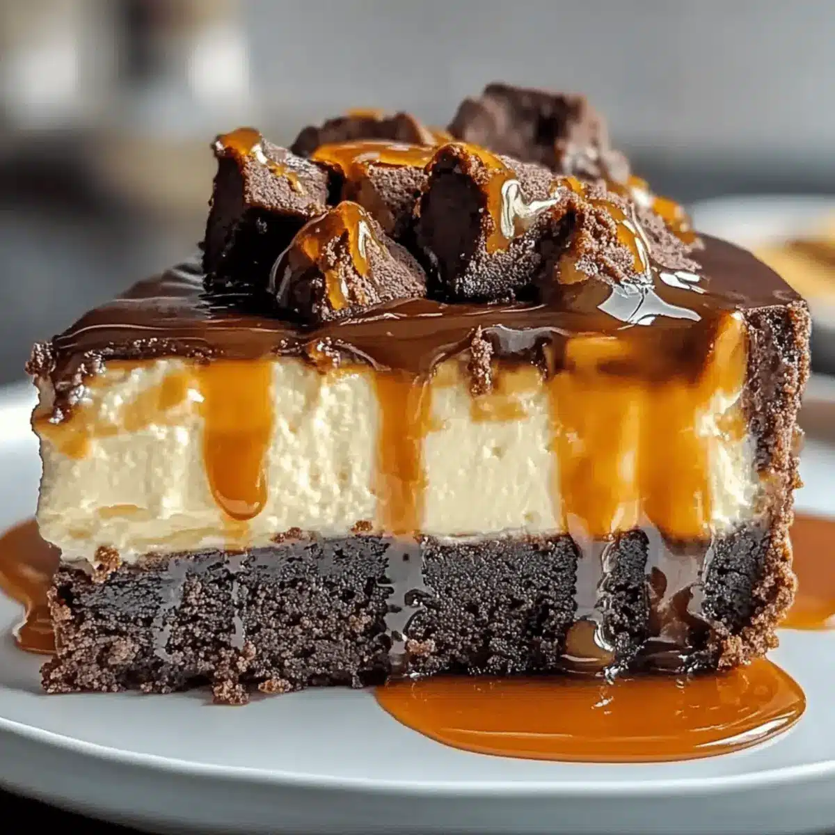 Indulge in Caramel Brownie Cheesecake Bliss Tonight