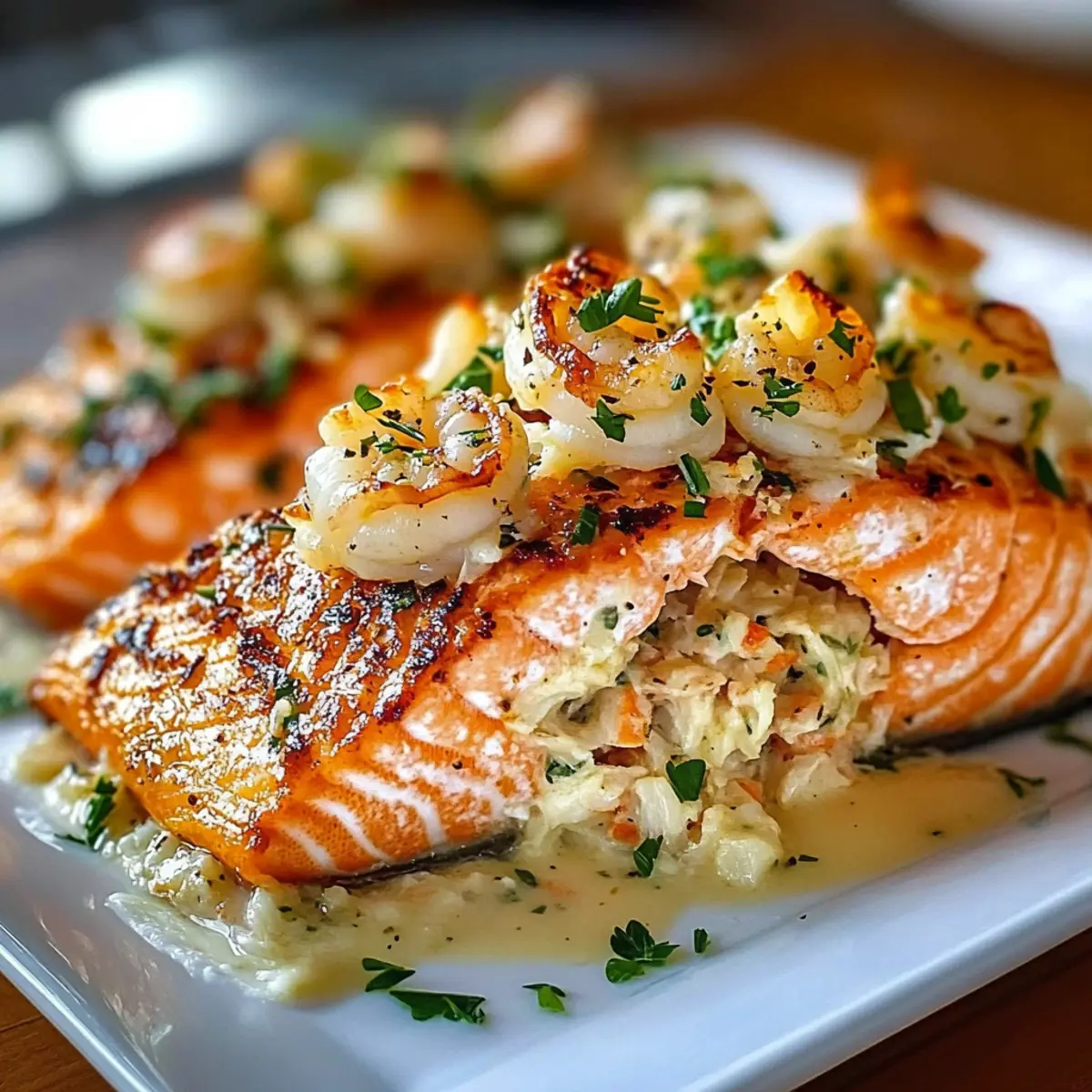 Elegant Crab Shrimp Stuffed Salmon for a Delectable Dinner