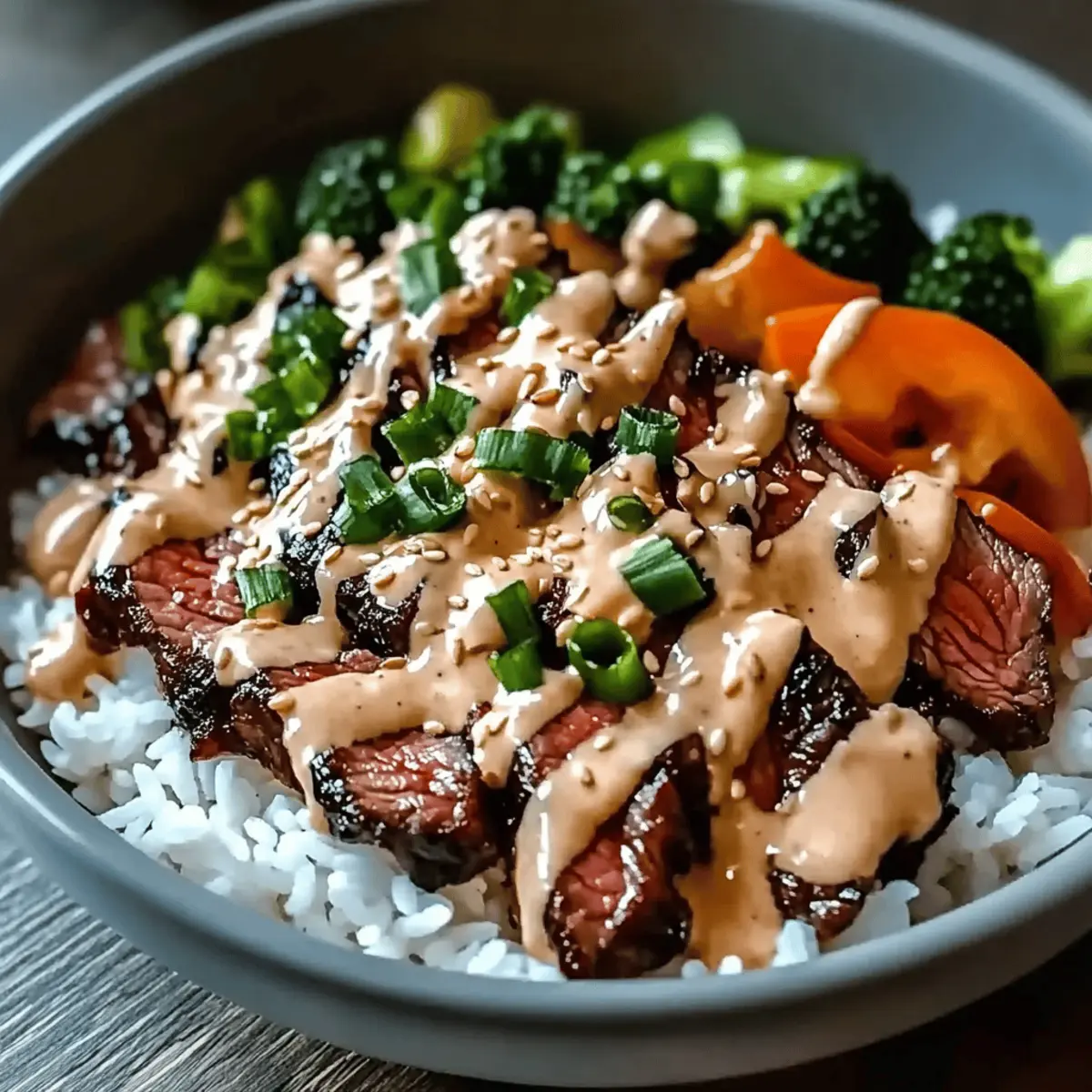 Korean BBQ Steak Rice Bowls with Spicy Cream Sauce Bliss