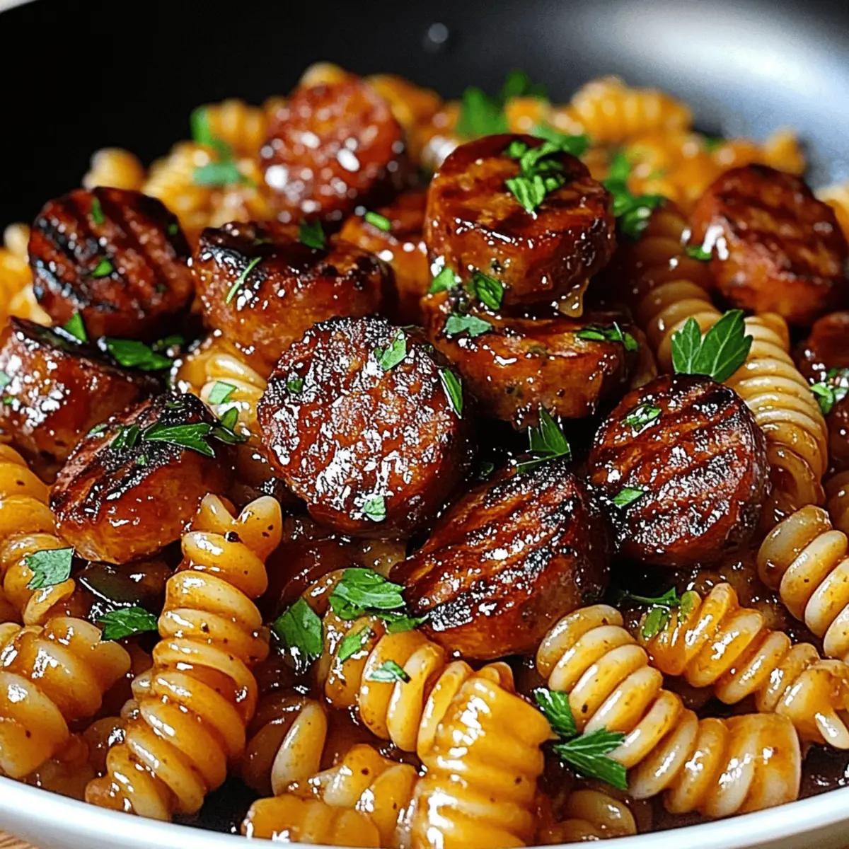 One-Skillet Spicy Honey BBQ Sausage & Pasta in 30 Minutes