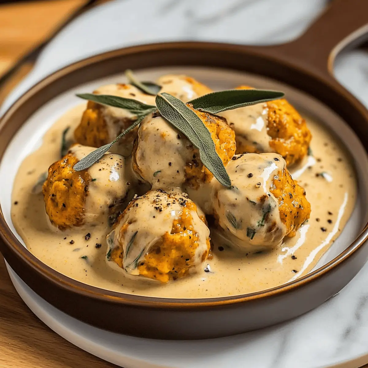 Pumpkin Chicken Meatballs in Sage Cream Sauce for Cozy Nights