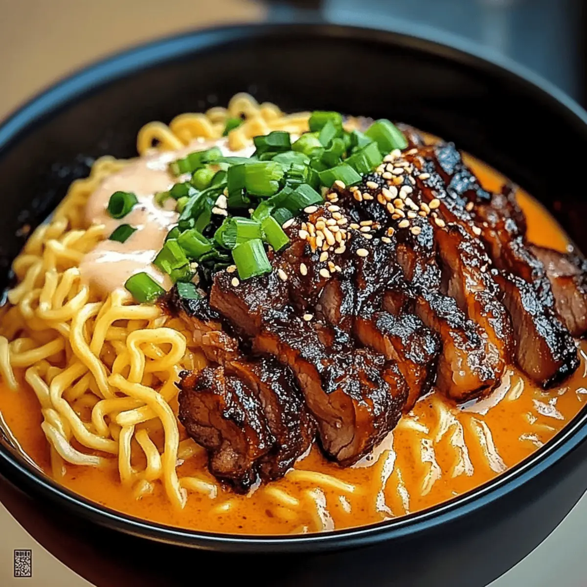 Spicy Korean Ramen with Grilled Beef & Creamy Sauce Bliss
