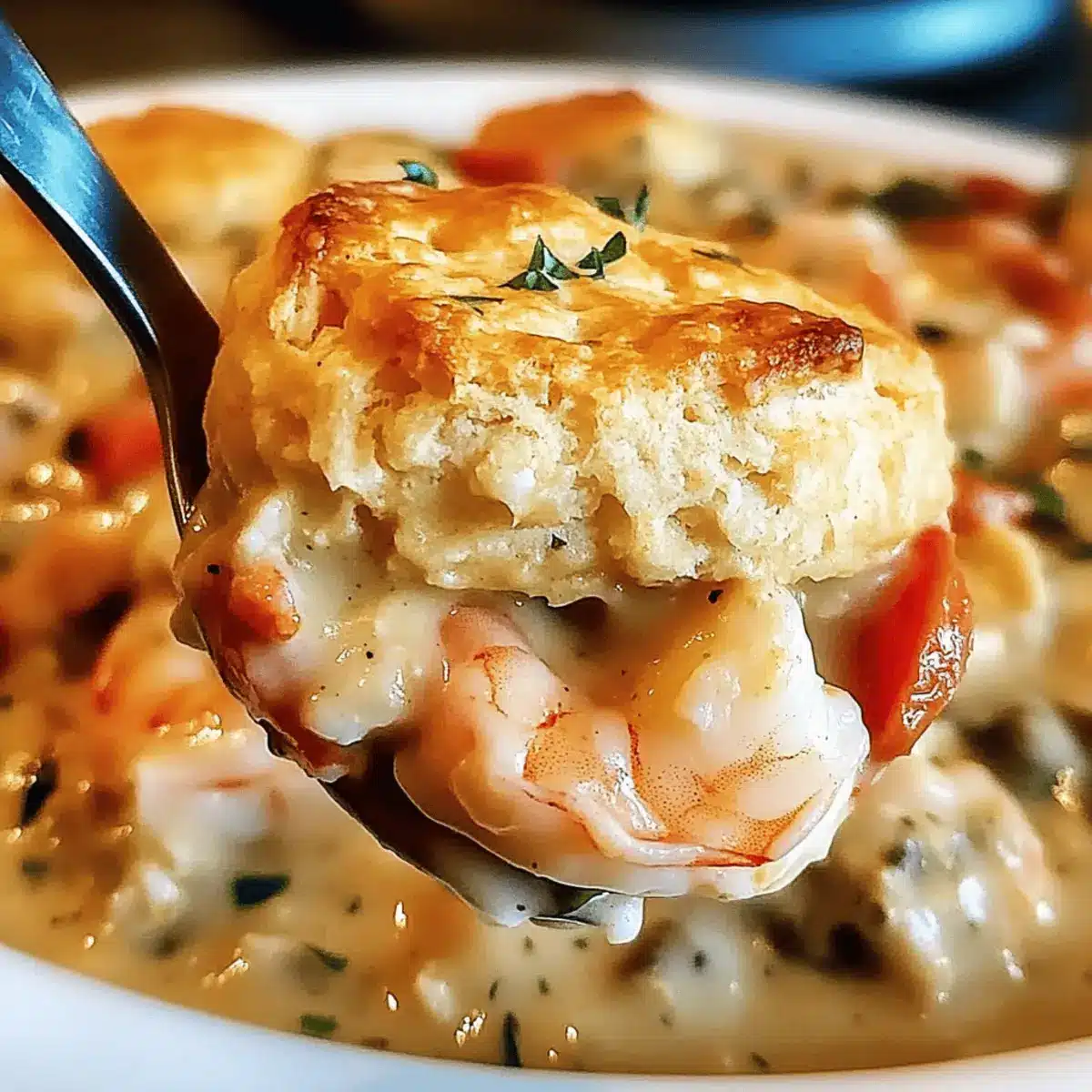 Absolutely! When choosing shrimp for your Cheddar Bay Biscuit Seafood Pot Pie, look for firm, translucent shells with a mild ocean scent. Fresh shrimp should be pink or gray, avoiding any with dark spots or a strong fishy odor. If using frozen shrimp, ensure they are properly thawed and peeled for the best texture.