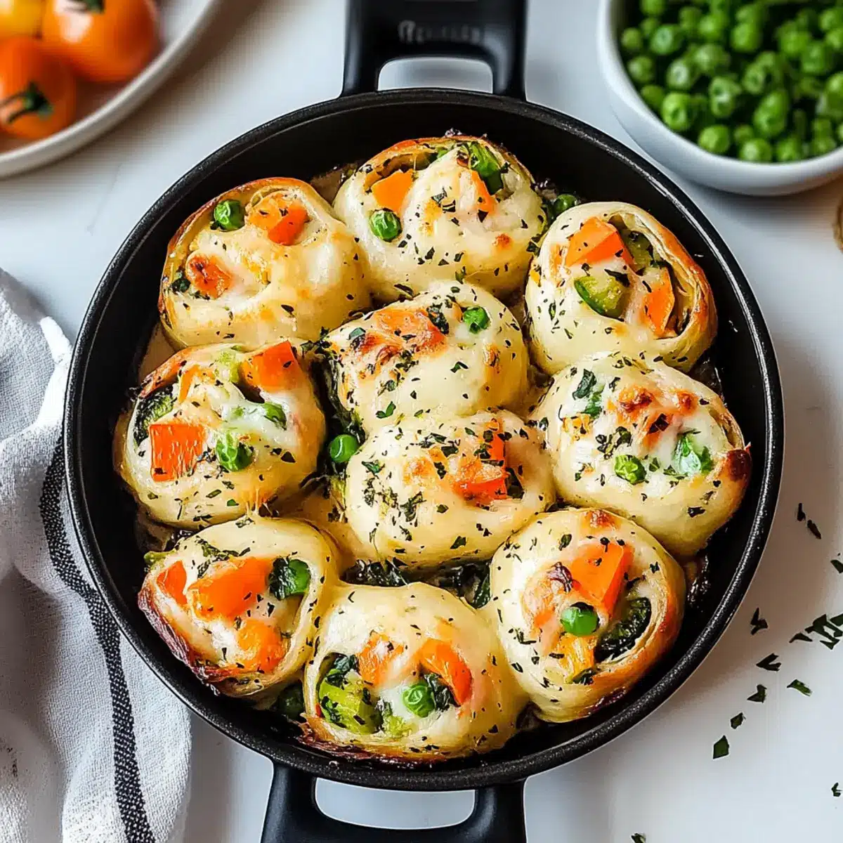 As I pulled my baking tray from the oven, the warm aroma of melting cheese and freshly baked bread filled my kitchen, making it nearly impossible to resist a bite. These Cheesy Baked Vegetable Rolls are the ultimate comfort food, offering a delightful combination of gooey cheese and nutritious veggies, all snugly wrapped in a golden crust. Not only are they quick to prepare, perfect for those busy weeknights, but their flexibility allows you to tailor the fillings to whatever seasonal produce you have on hand. Imagine serving these little bundles of joy as a cozy snack or a satisfying side dish that will impress family and friends alike! Are you ready to roll up those sleeves and dive into a fresh batch?