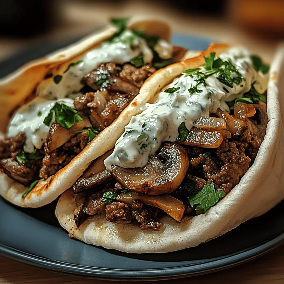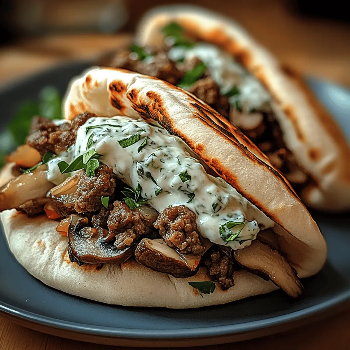 Step‑by‑Step Instructions for Cheesy Beef and Mushroom Pita Pockets with Tzatziki Sauce