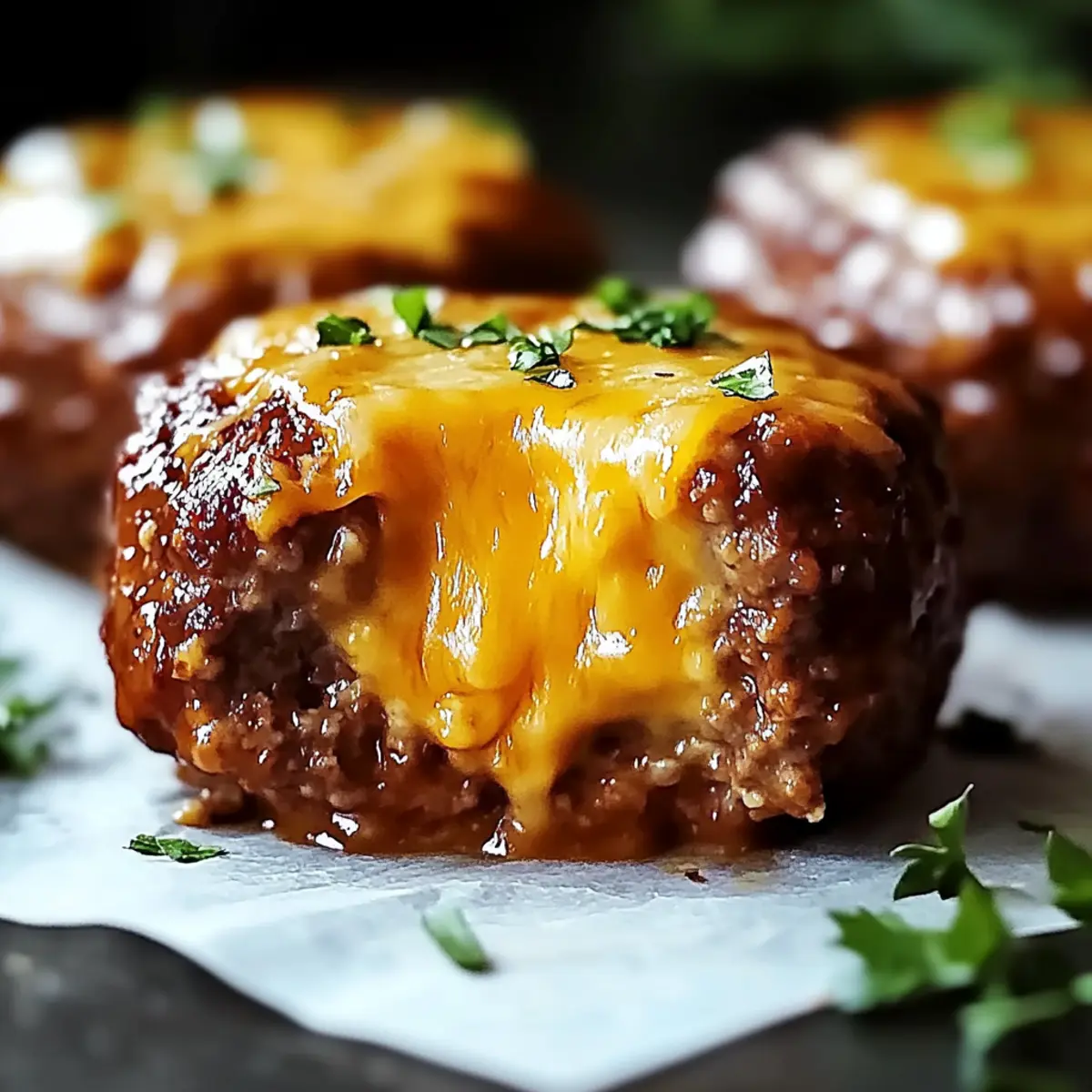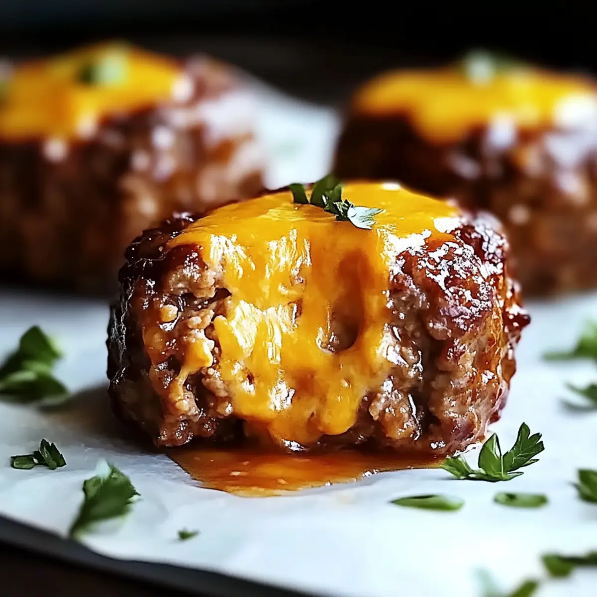 Once baked, remove the baking sheet from the oven and allow the Cheesy Stuffed Meatloaf Bites to cool for about 5 minutes. This resting period is essential to prevent burns from the melted cheese at the center. As they cool, the flavors will meld beautifully, making each bite even more delightful.