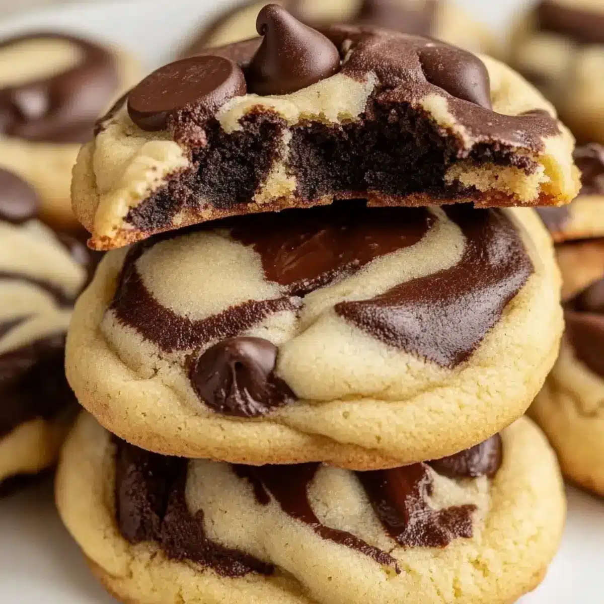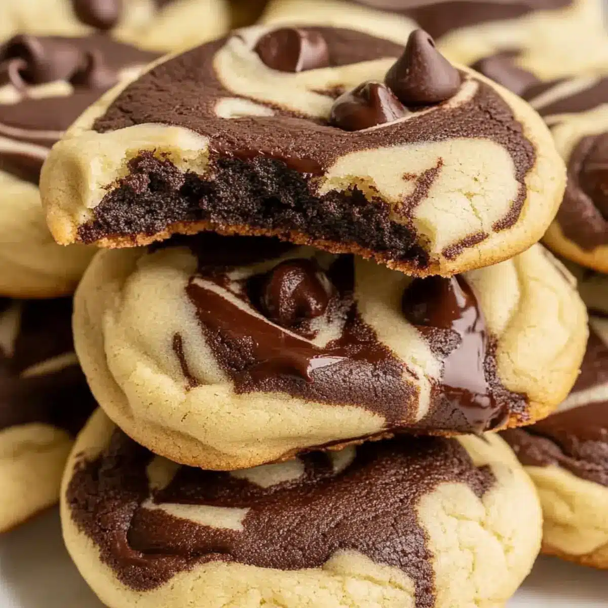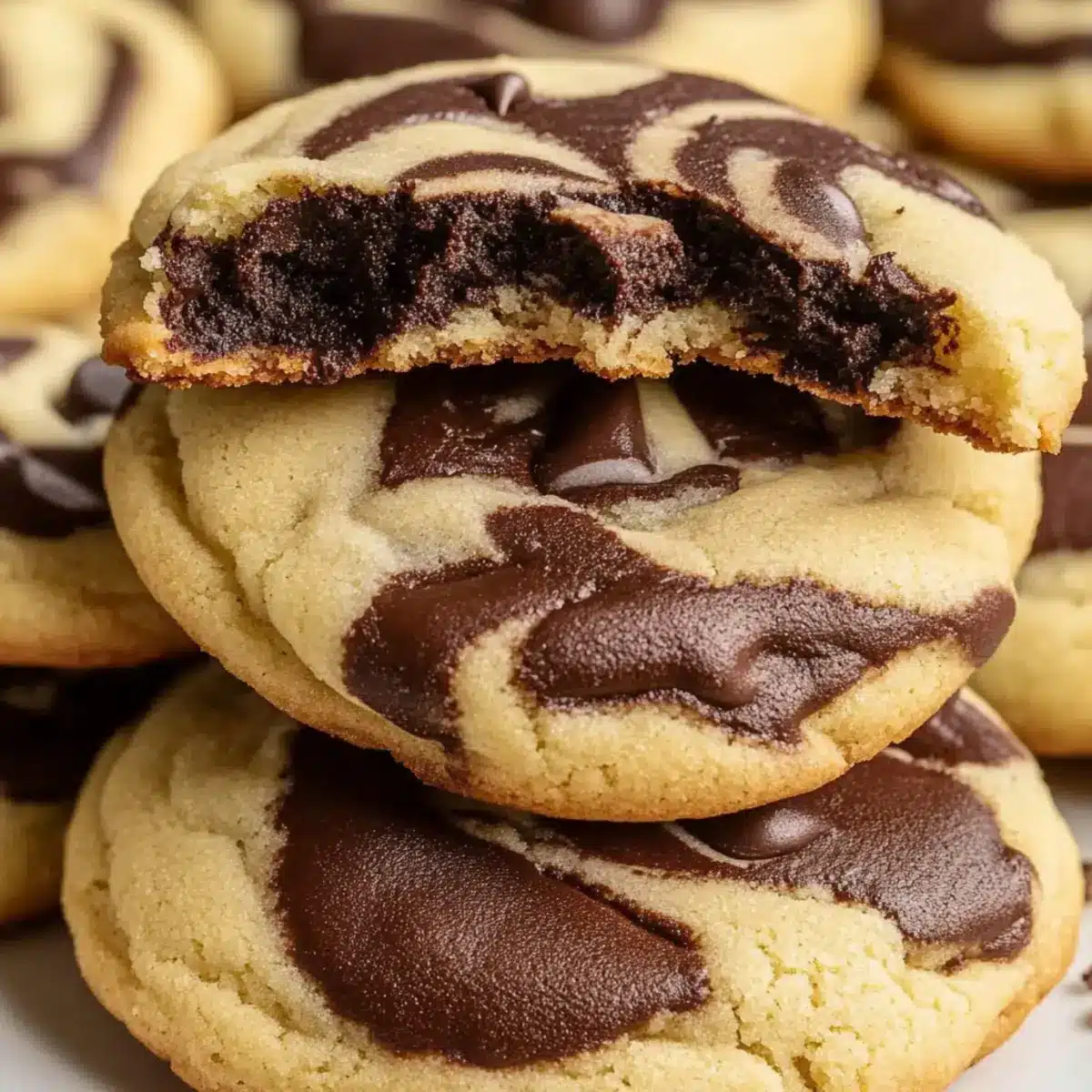 The first bite of these Chewy Chocolate Chip Marble Cookies takes me back to carefree afternoons spent in my grandmother’s kitchen, surrounded by the warm aroma of baking. What sets these cookies apart is their beautiful marbled swirl of rich chocolate and creamy vanilla, enhanced with a subtle hint of espresso that elevates the flavor profile. They’re not just visually stunning; their soft and chewy texture makes every bite an indulgent experience. Perfect for a quick homemade treat, these cookies are sure to impress both family and friends alike. Whether you’re winding down after a long day or celebrating a special occasion, these delectable delights offer a delightful escape from fast food. Just wait until you see the looks on their faces when they discover the surprise inside! Are you ready to treat yourself? Let’s dive into this delightful recipe together.
