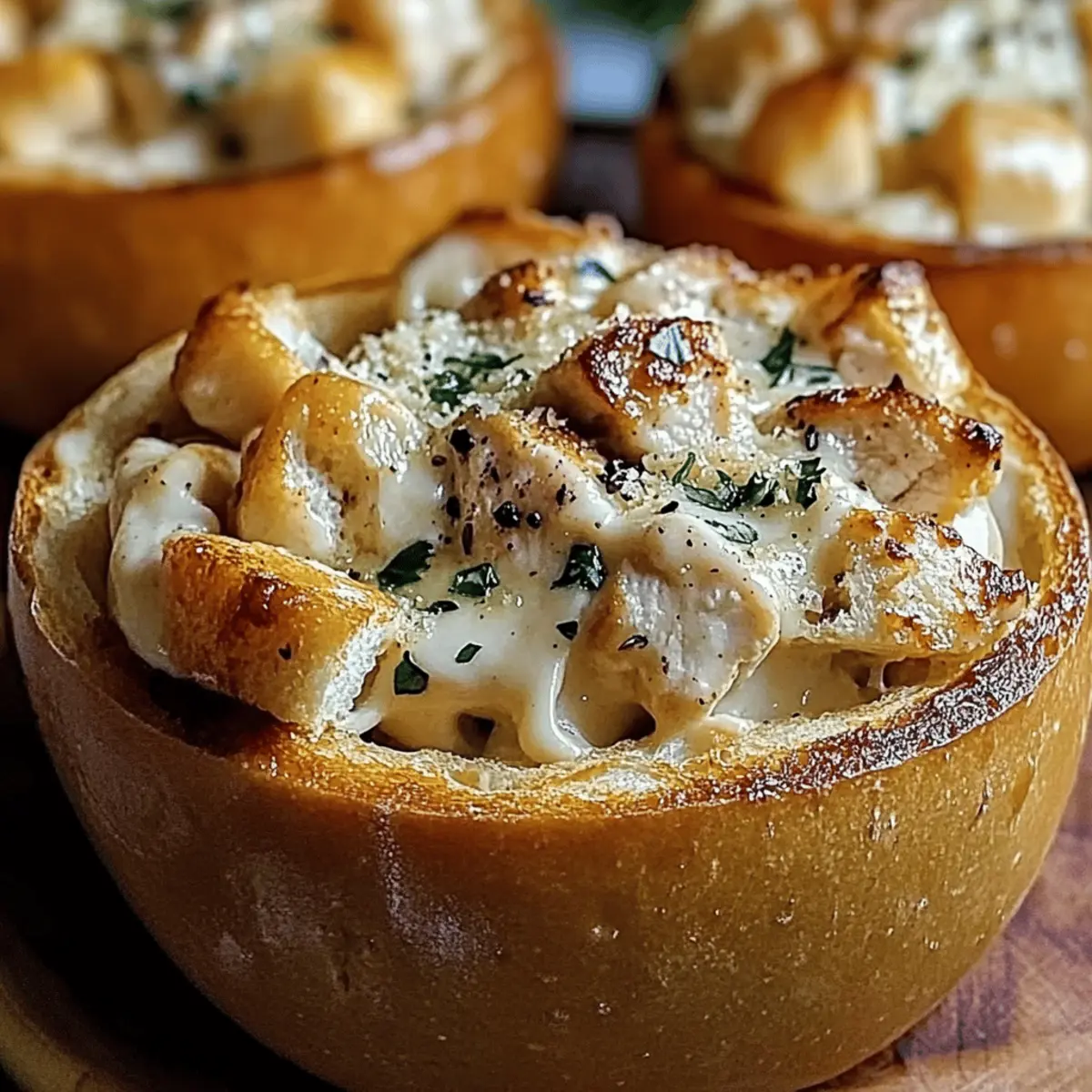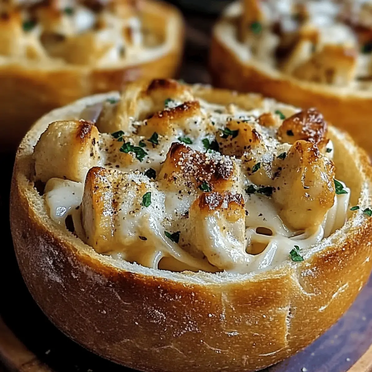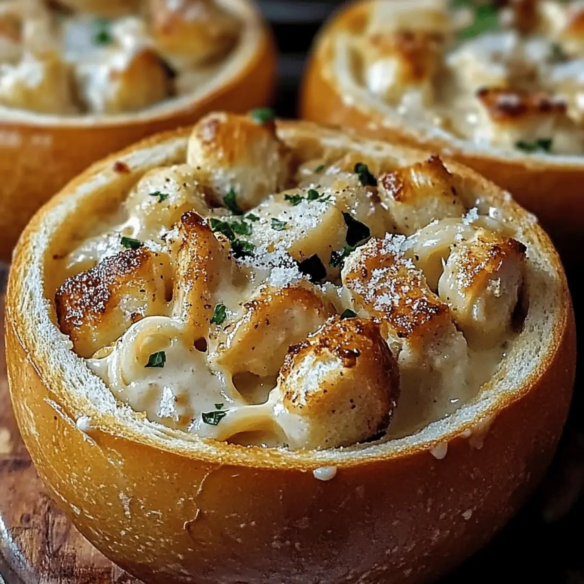 Savor Chicken Alfredo Garlic Bread Bowls for Ultimate Comfort