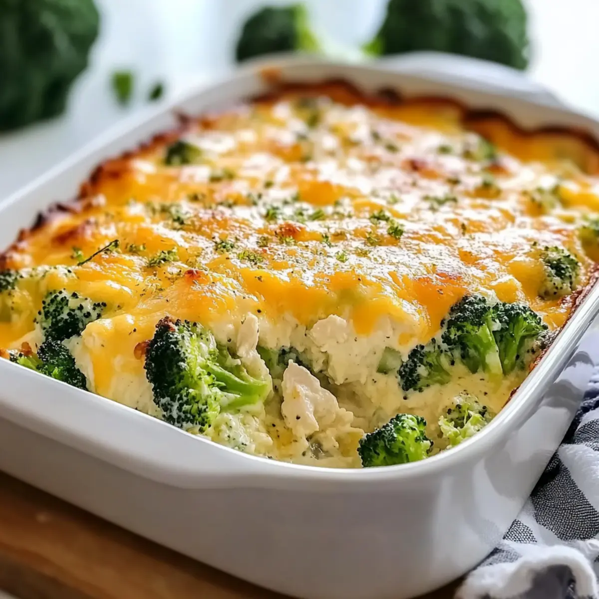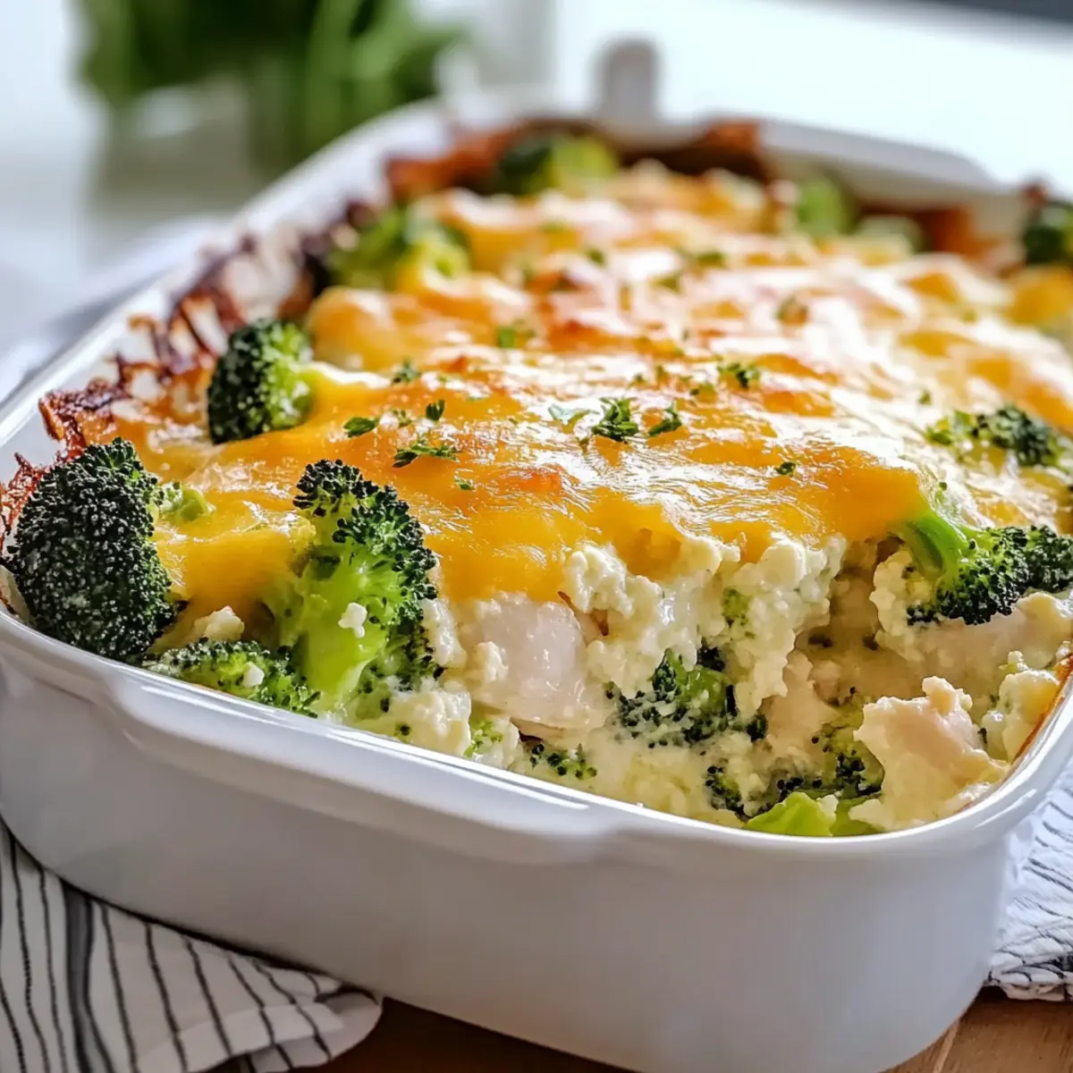 No worries! If your Chicken Broccoli Cottage Cheese Bake is too watery, it may be due to excess moisture from the broccoli. Continue baking it for an additional 5-10 minutes; the heat will help thicken the sauce. Alternatively, you can sprinkle a handful of breadcrumbs on top before baking to absorb extra moisture and create a delightful crust.