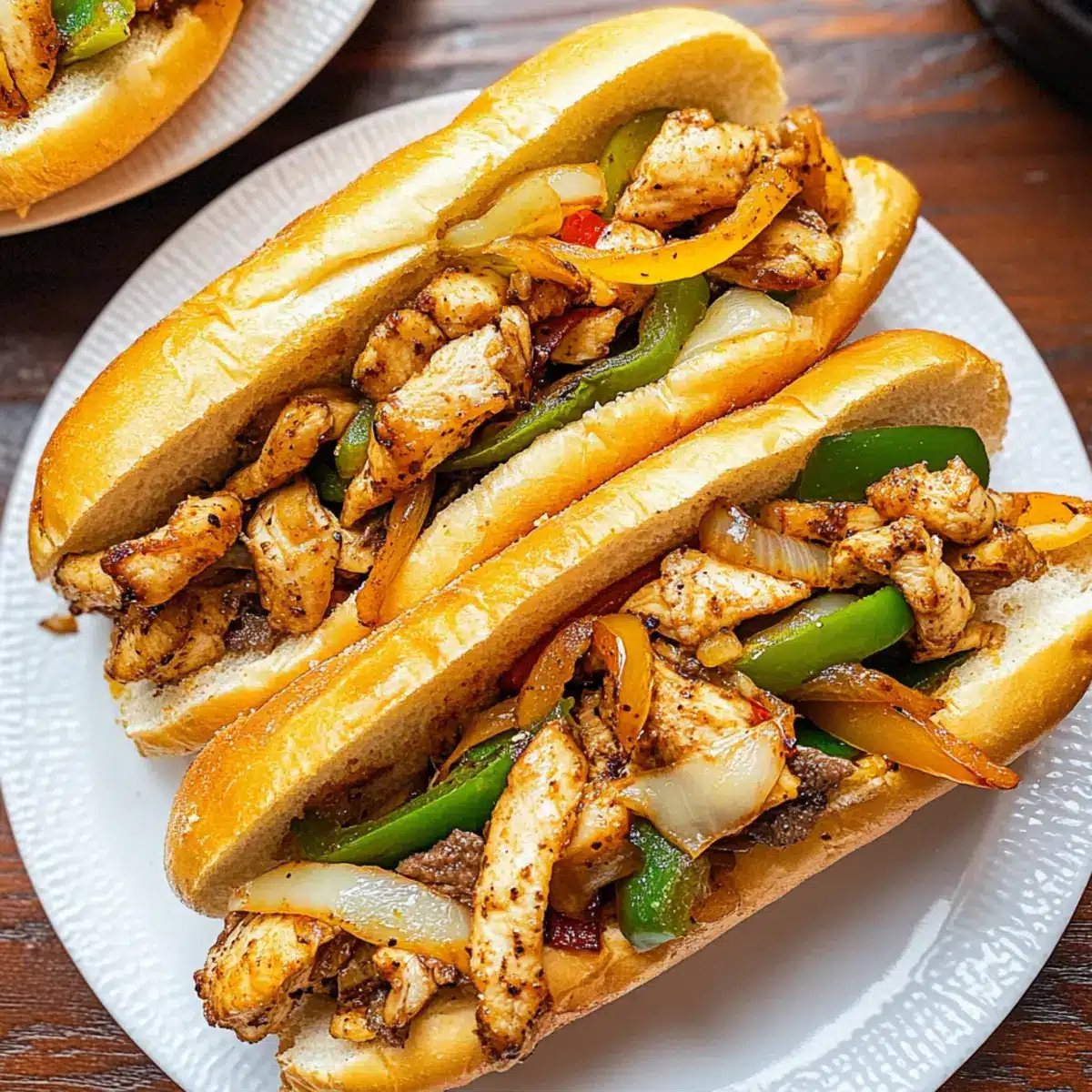 With a sizzling sound echoing in my kitchen, I found myself captivated by the aroma of Chicken Cheese Steak Sandwiches sizzling in the pan. This delightful twist on a classic cheesesteak transforms tender, seasoned chicken, sweet onions, and vibrant bell peppers into a mouthwatering meal that’s as quick as it is satisfying. Not only is this recipe gluten-free, but it also boasts the irresistible perk of being an easy weeknight solution that pleases both the casual diner and the passionate home-chef. The melted provolone cheese that drapes over the chicken mixture creates a creamy layer of goodness that you won’t be able to resist. Are you ready to make a sandwich that will elevate your dinner routine? Let’s dive in!