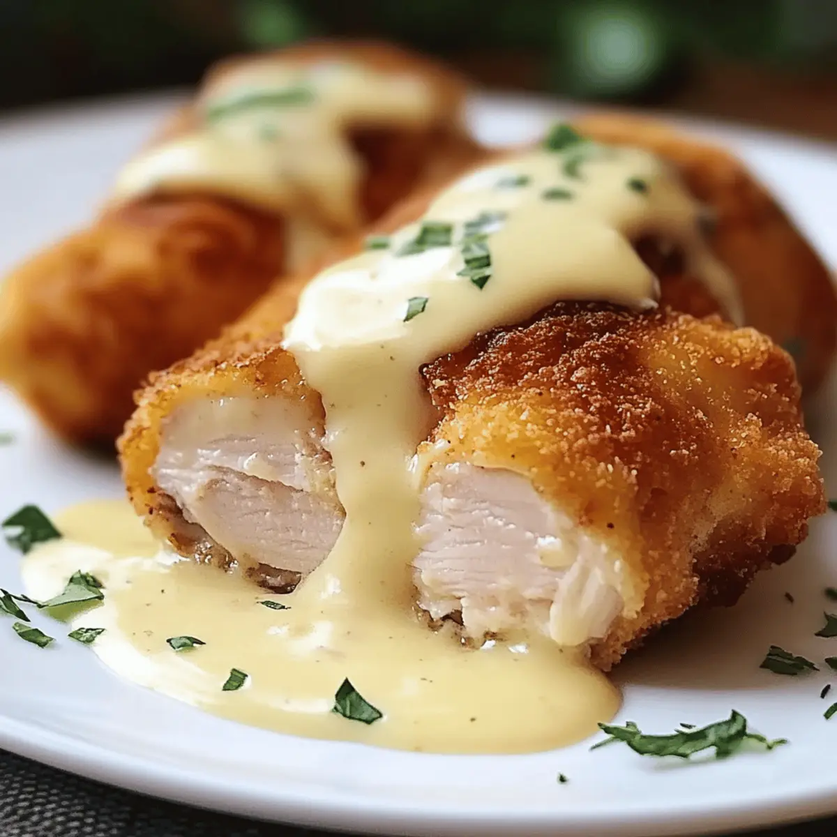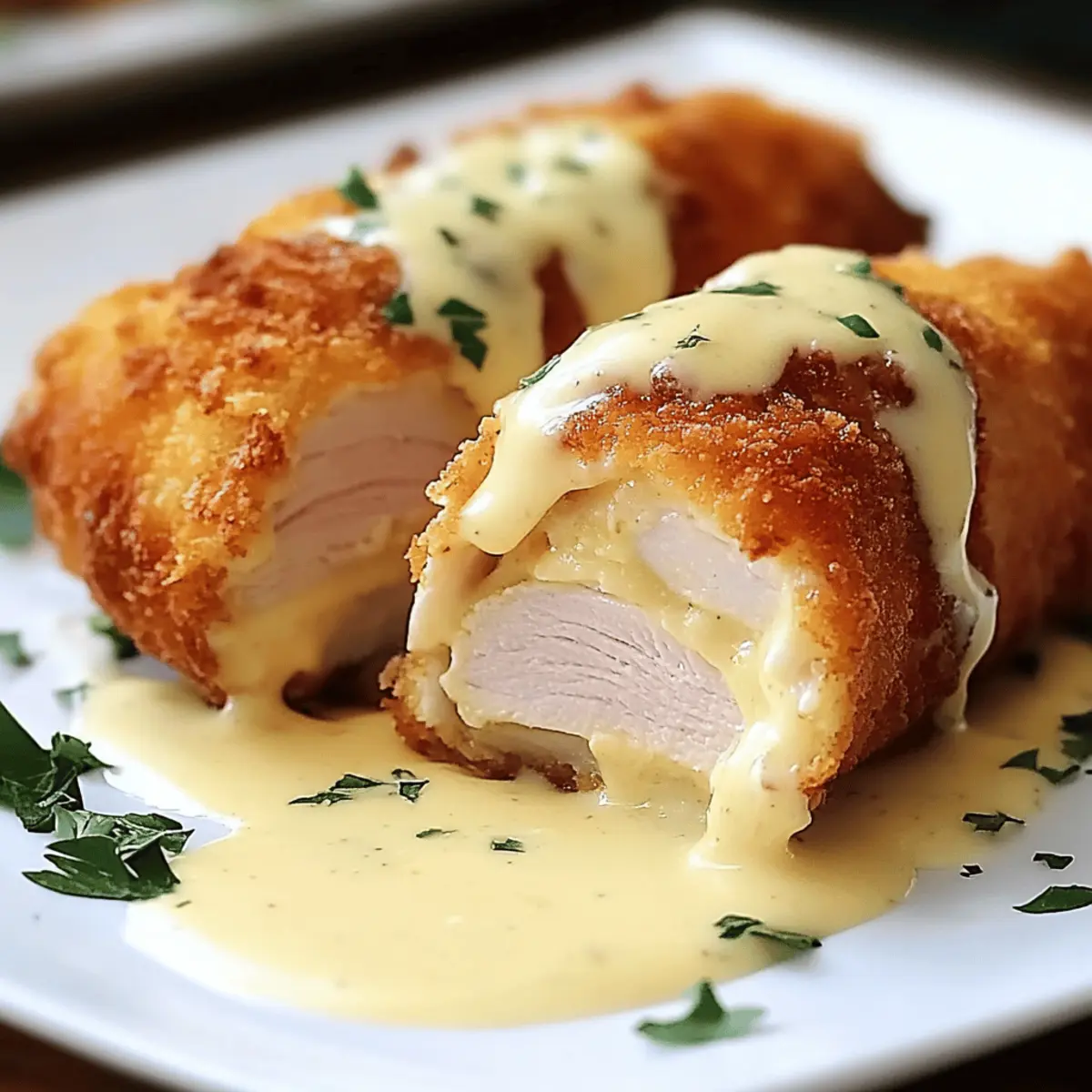 Once the Chicken Cordon Bleu has finished baking, remove it from the oven and let it rest for a few minutes. Carefully slice each roll, and drizzle with your luscious Swiss cheese sauce. Serve warm, allowing the flavors to shine through, and bask in the joy of a homemade meal that’s bound to impress!