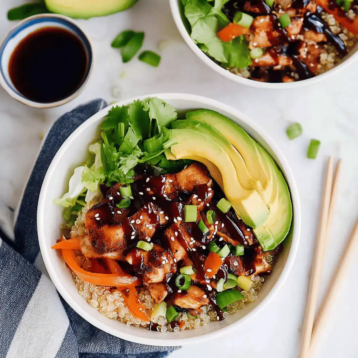 These Chicken Dinner Bowls are perfect for busy weeknights and meal prep! You can marinate the chicken and chop the fresh veggies up to 24 hours in advance, storing them in the refrigerator to keep flavors fresh. Prepare your grain base, such as rice or quinoa, and refrigerate it for 3 days as well. When you’re ready to serve, simply cook the marinated chicken and sauté the veggies until they’re tender, then assemble your bowls. To maintain quality, keep sauces separate until just before serving, ensuring each bite of your Chicken Dinner Bowl is as delicious as the first!