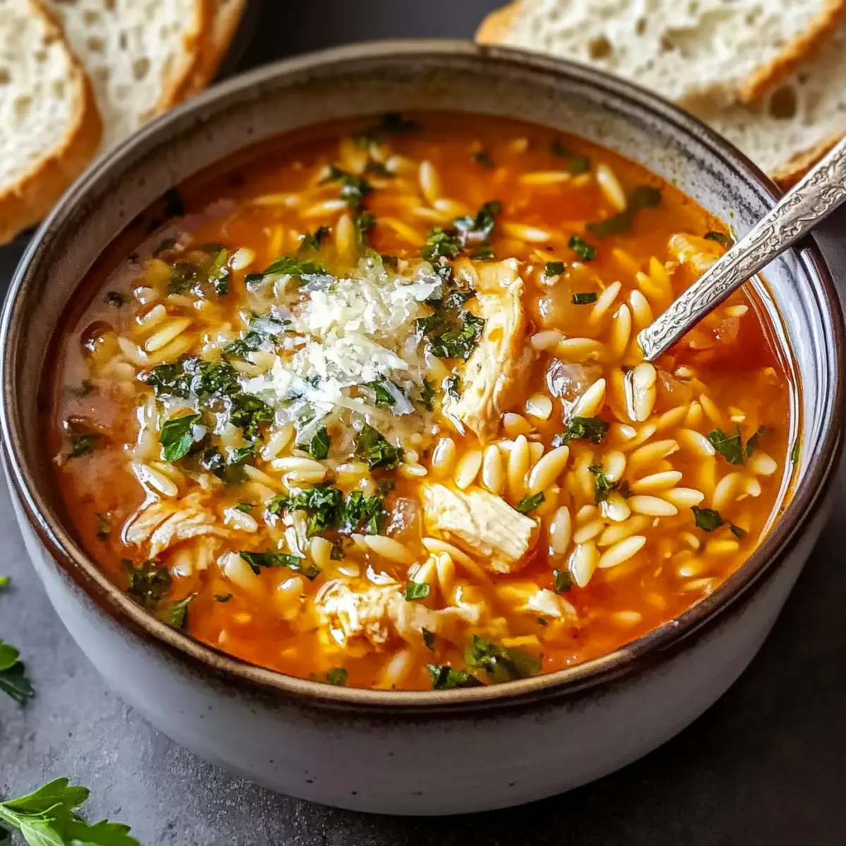 Herb Personalization: Feel free to experiment with garnishes; fresh herbs like basil or parsley can be swapped based on what you have on hand. This adds a personalized touch to your Chicken Orzo Tomato Soup.
