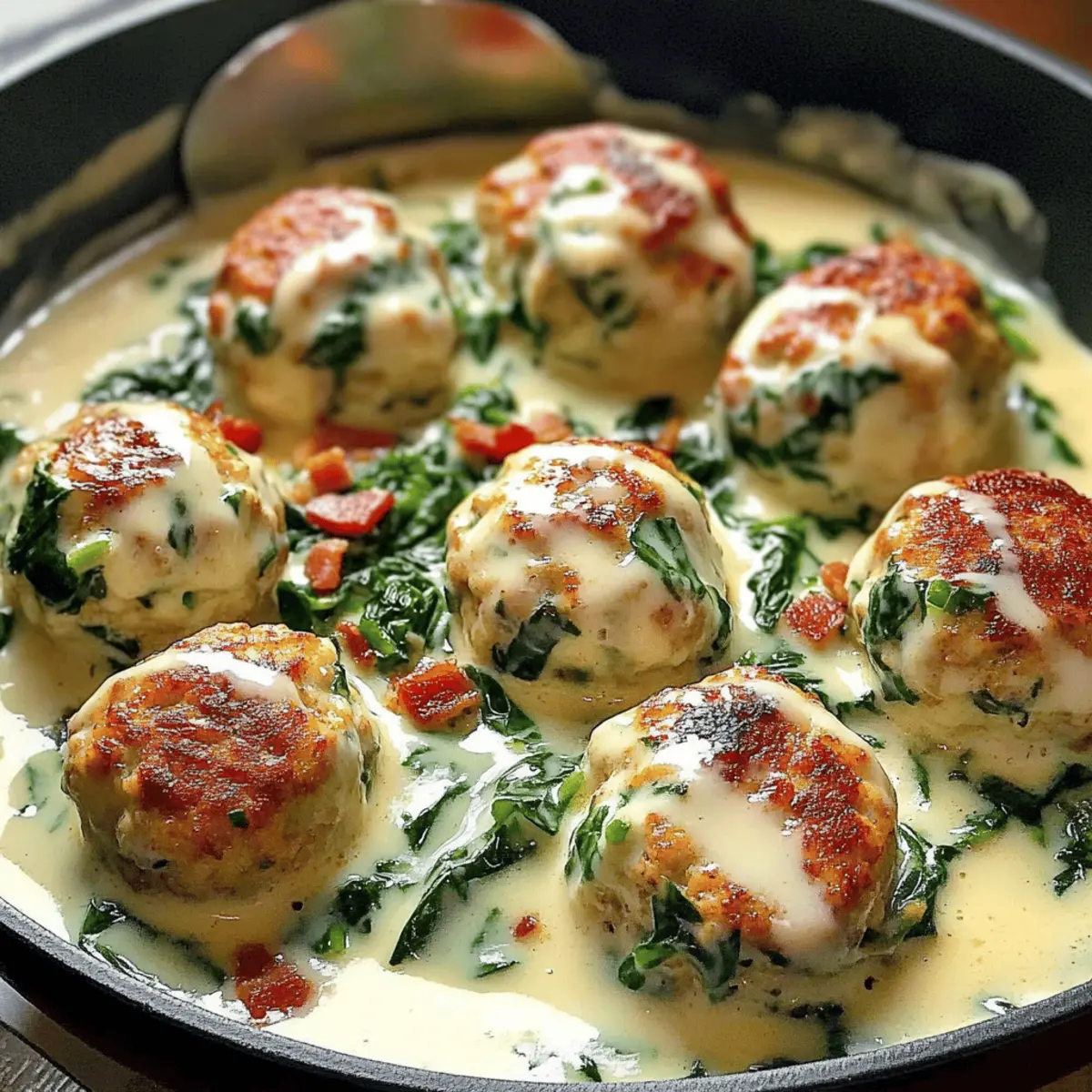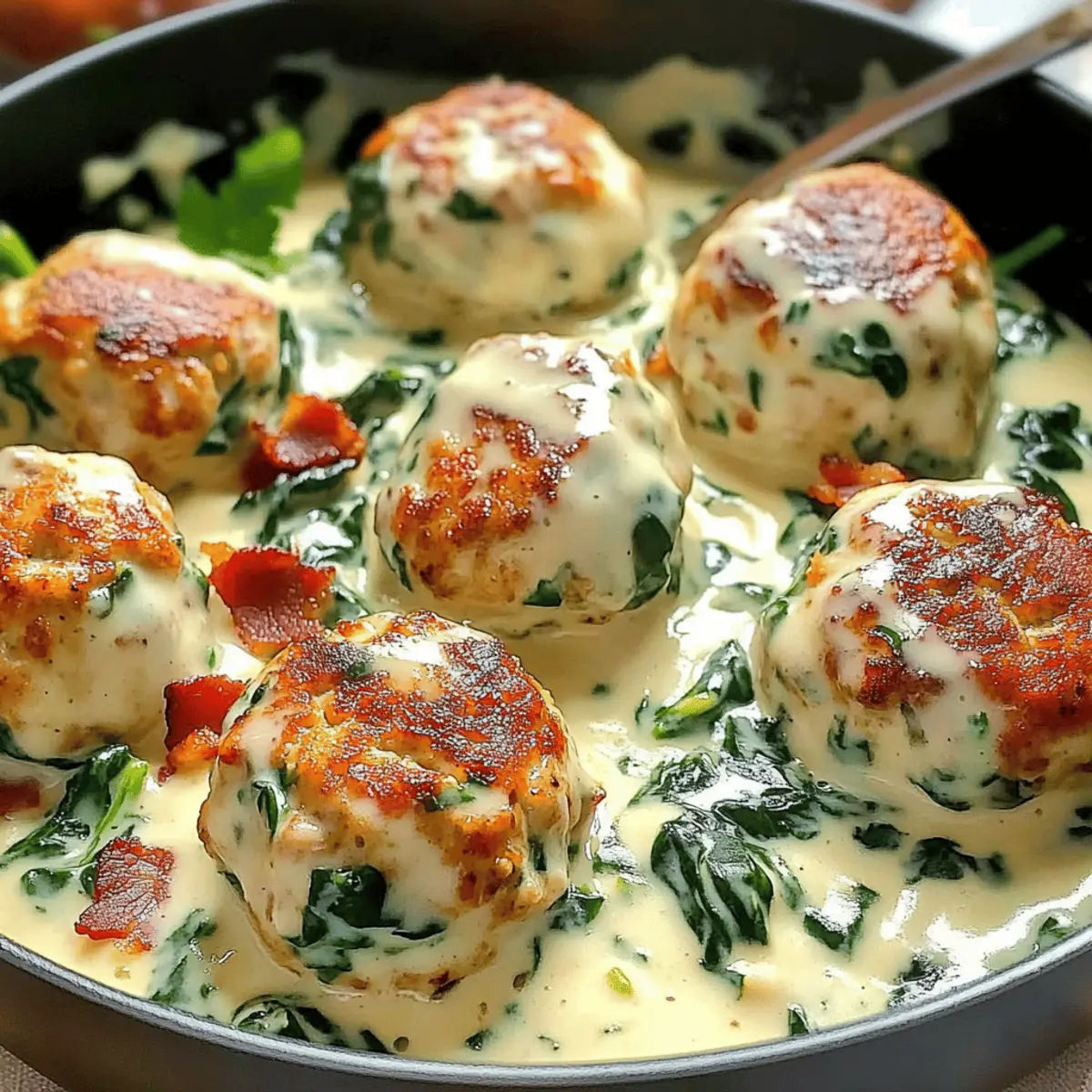 Savory Chicken Ricotta Meatballs in Spinach Alfredo Sauce