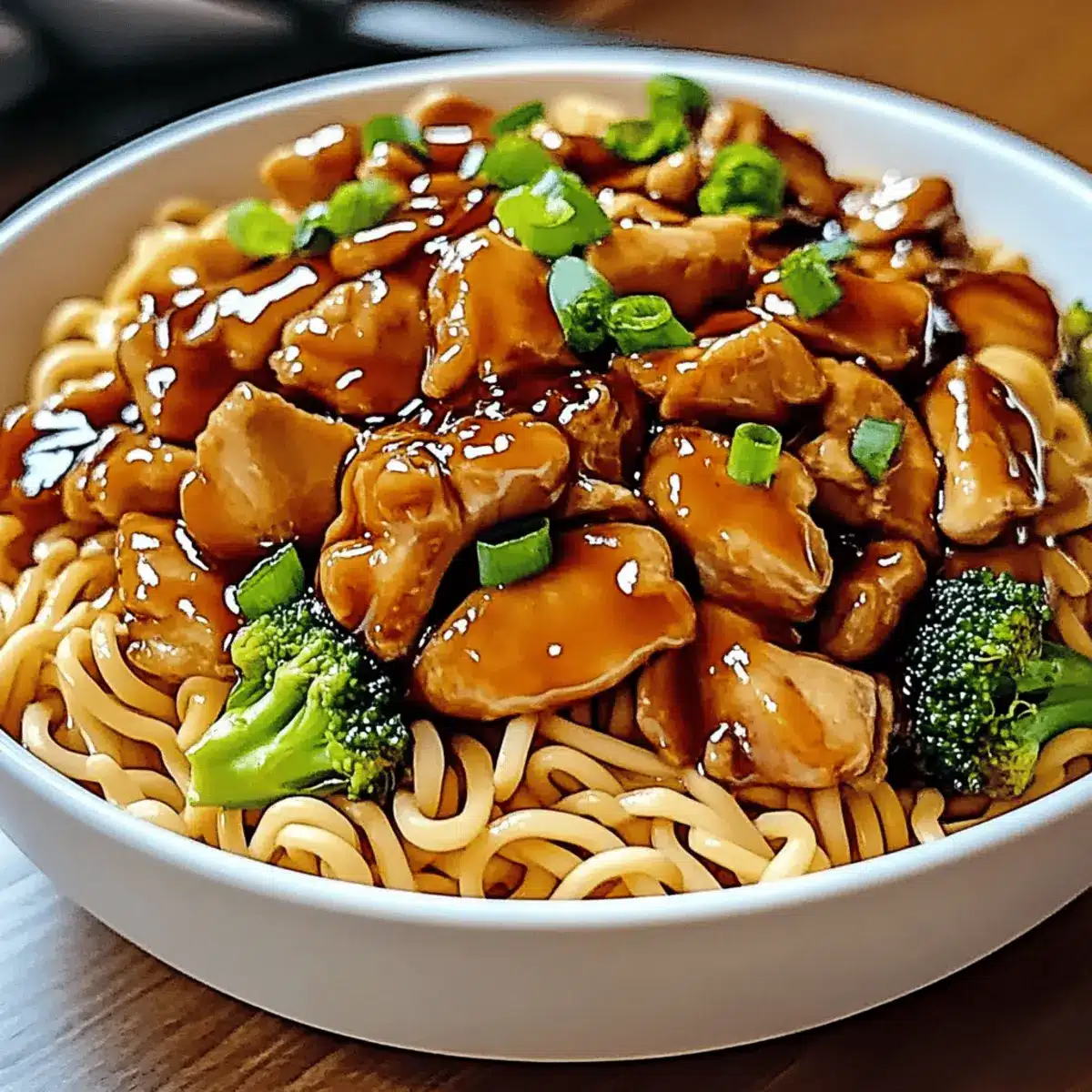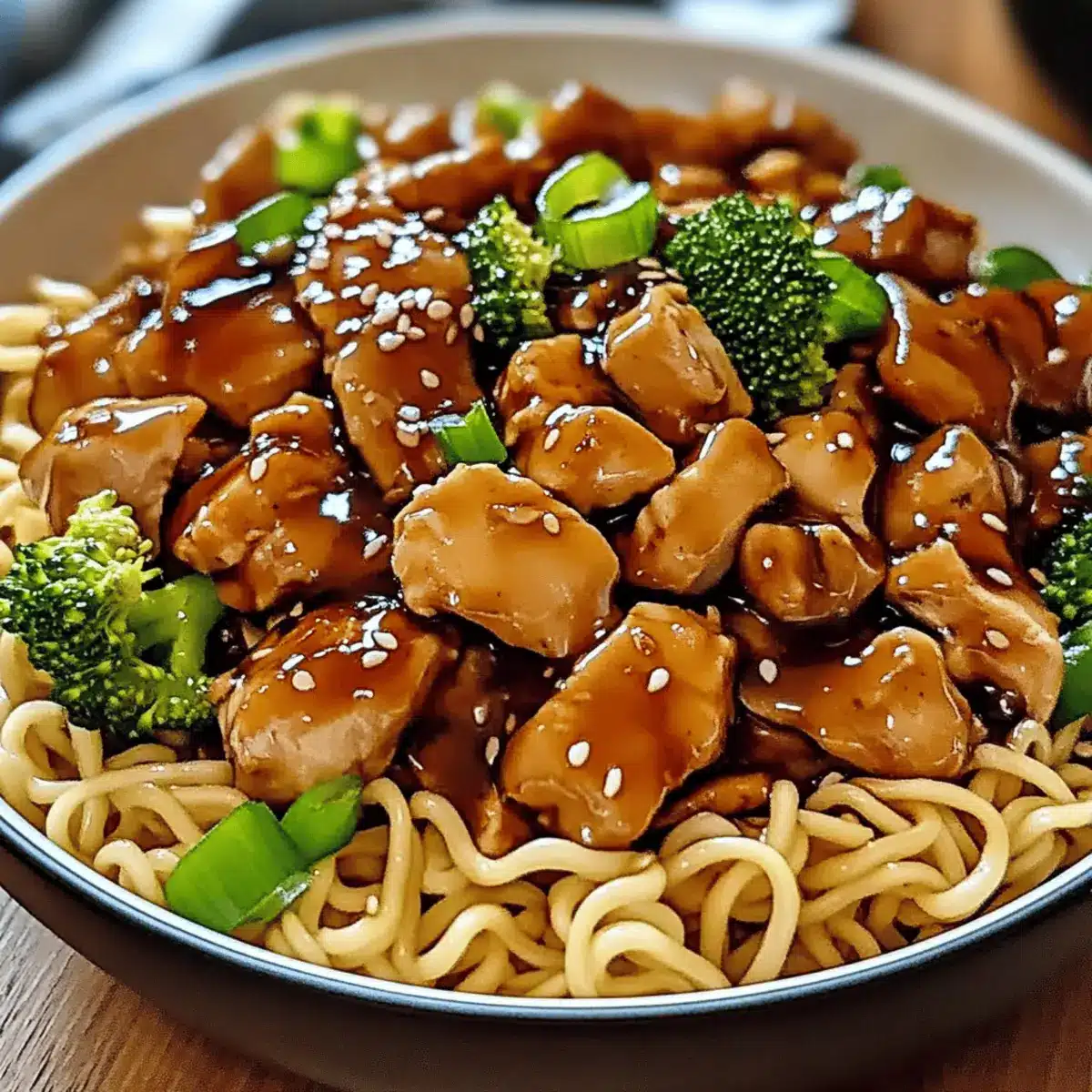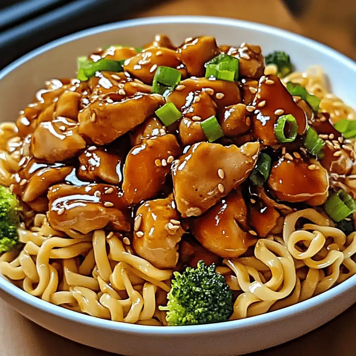 Mouthwatering Texture: Enjoy tender chicken and soft noodles coated in a glossy glaze, paired with crisp vegetables for a satisfying crunch.