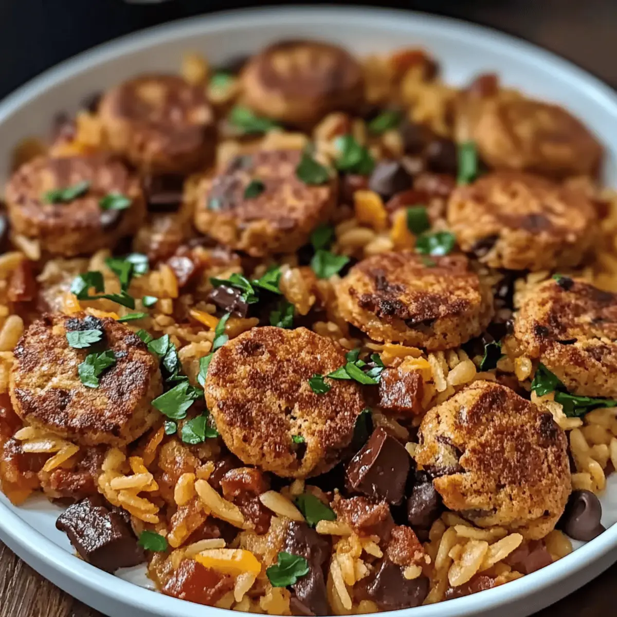 After the rice has absorbed all the liquid and is tender, remove the skillet from the heat. Let it sit, covered, for an additional 5 minutes to enhance the texture. Then, use a fork to fluff the rice gently, incorporating the sausage and veggies. For a pop of freshness and color, sprinkle chopped green onions or parsley over the top before serving your delectable Cajun Sausage and Rice Skillet.