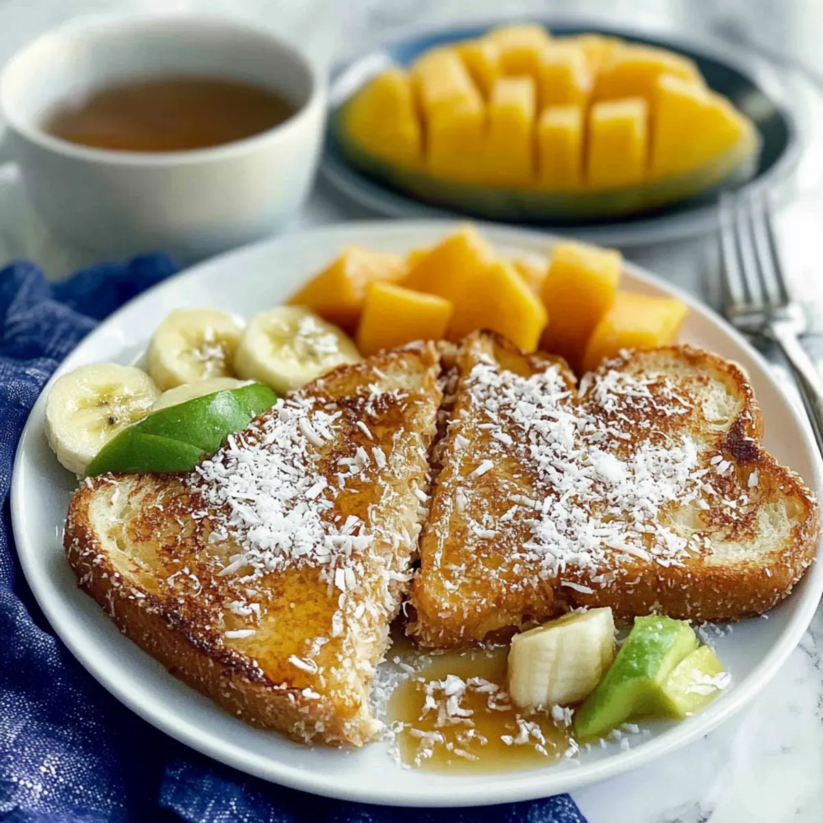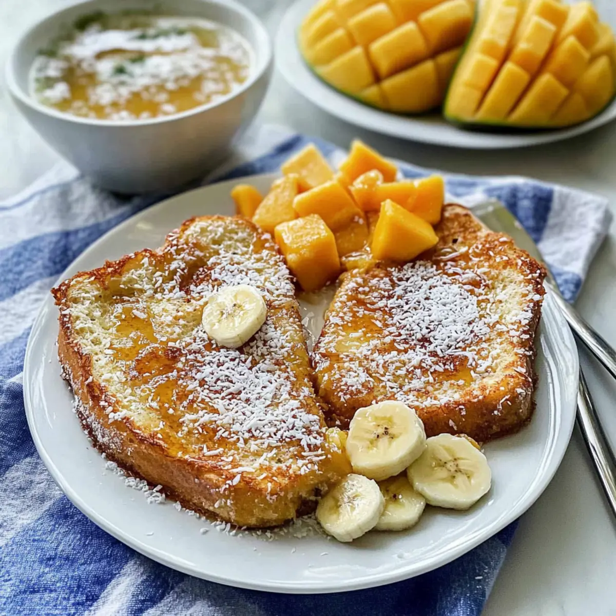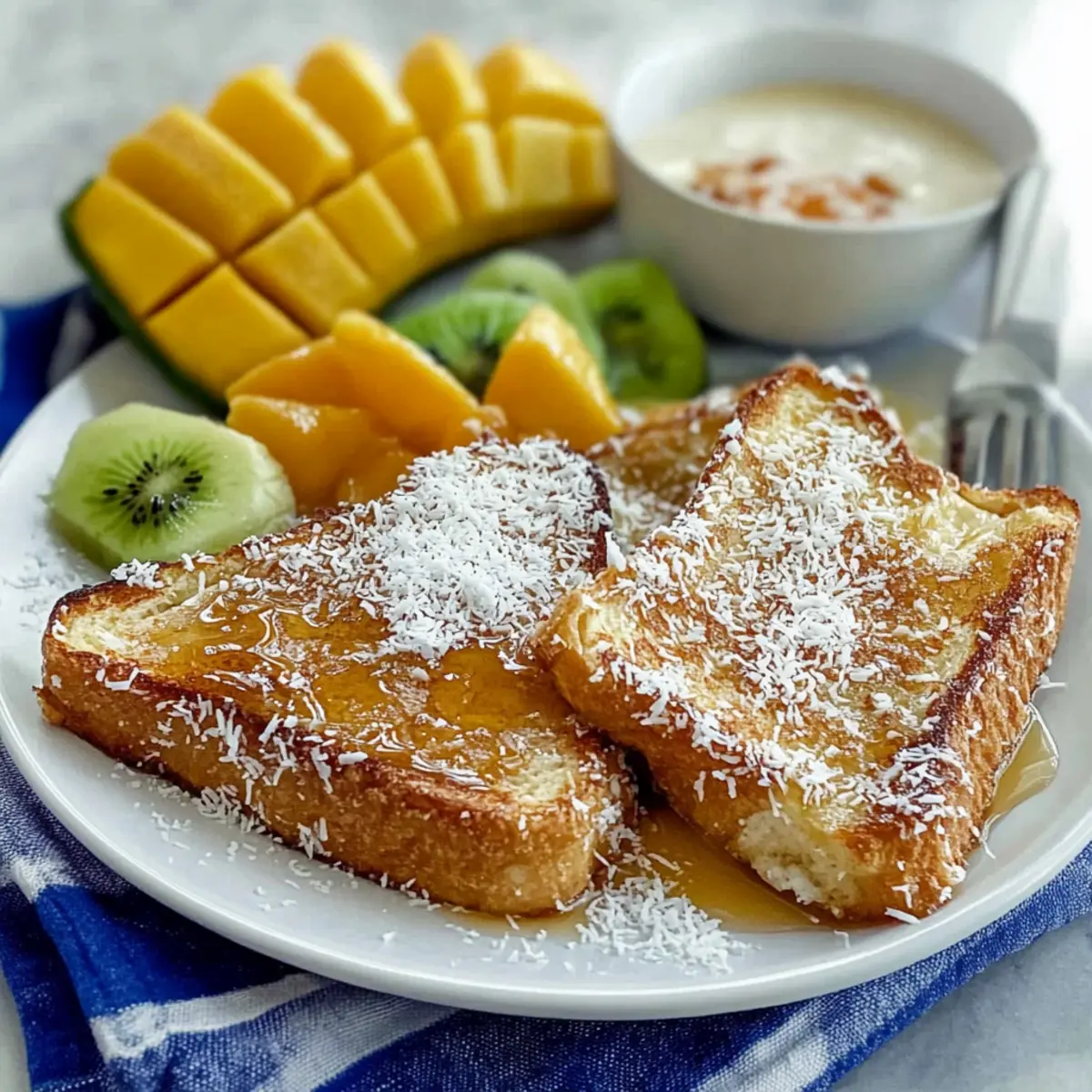 Serving Tip: Serve warm with fresh toppings like maple syrup or tropical fruits to elevate the Coconut French Toast experience.