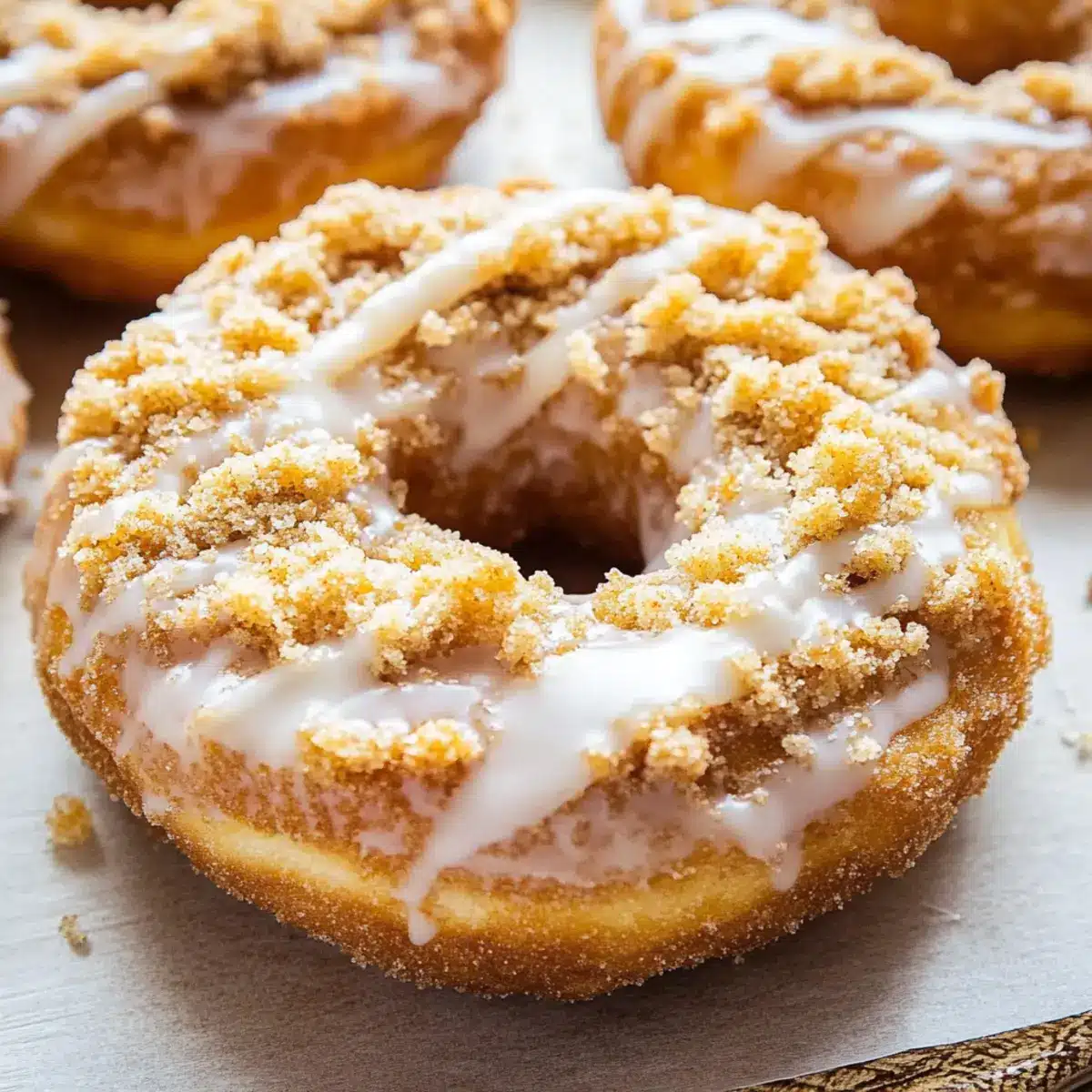 Cleaning the Holes: Use a toothpick to remove excess crumb topping from the donut holes before baking. This ensures even cooking and a perfect donut shape.