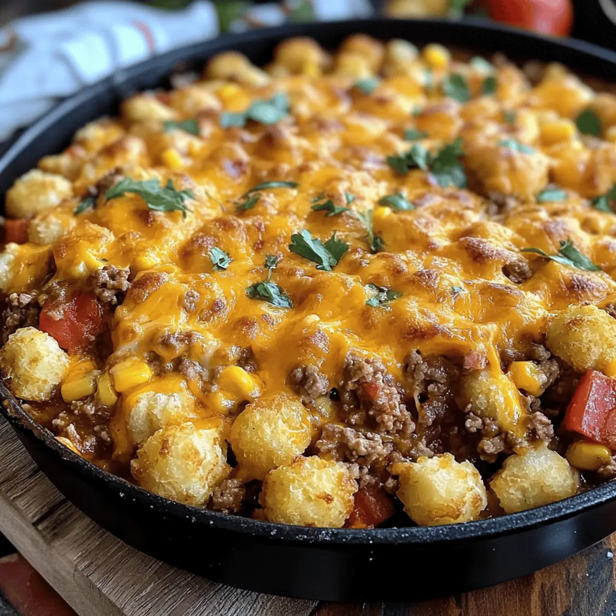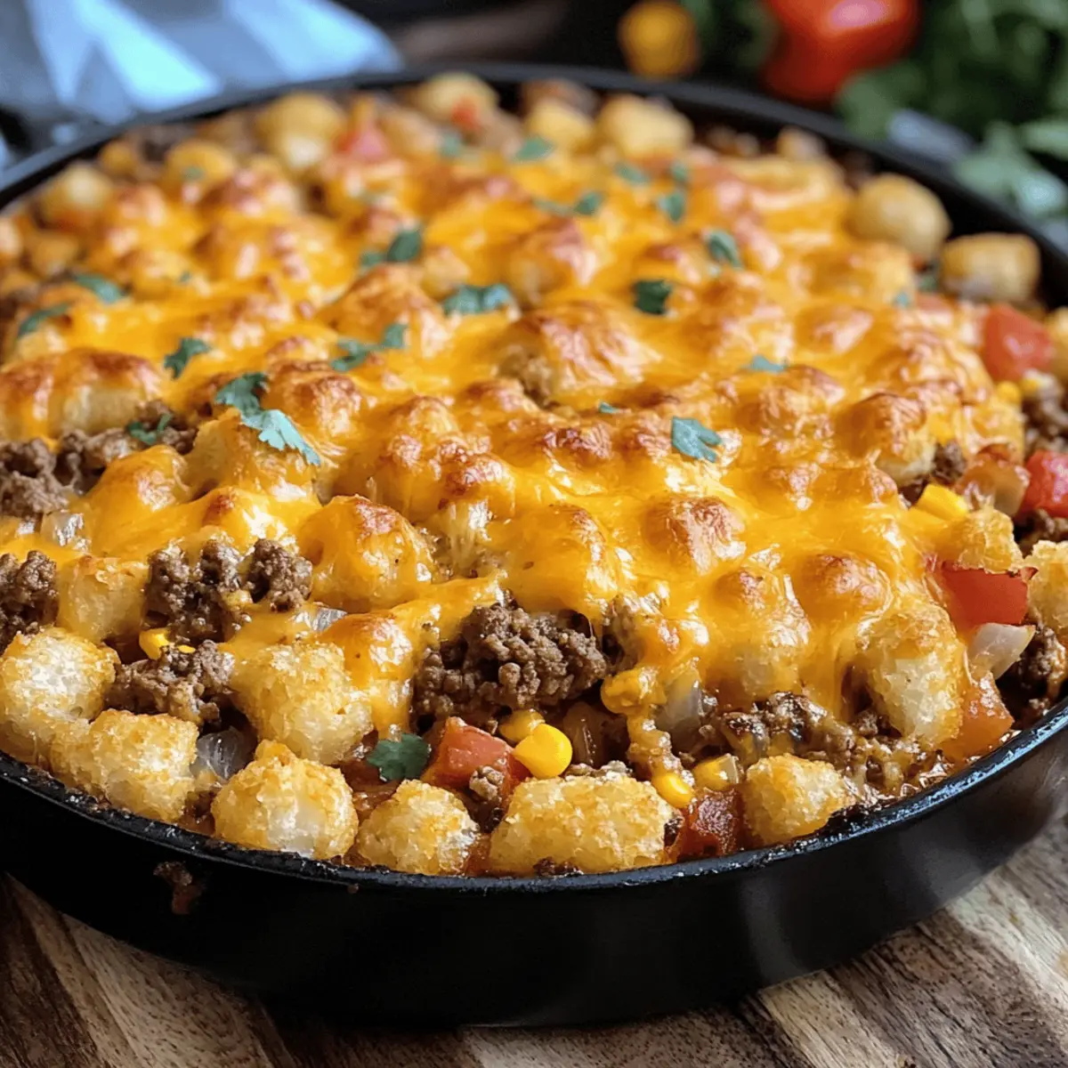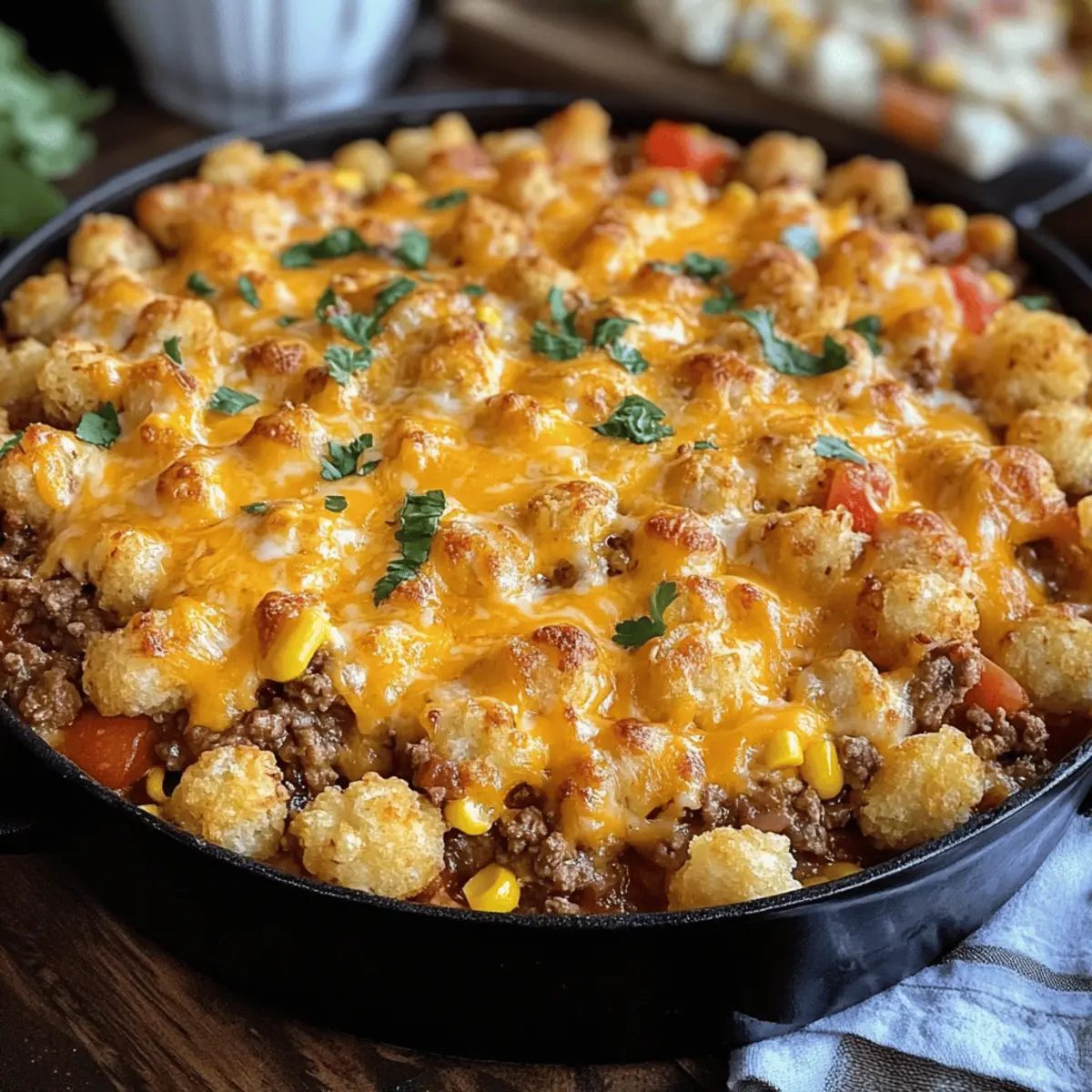 Prevent Sogginess: Ensure the tater tots are frozen when placing them on top; this helps achieve that crispy finish after baking.
