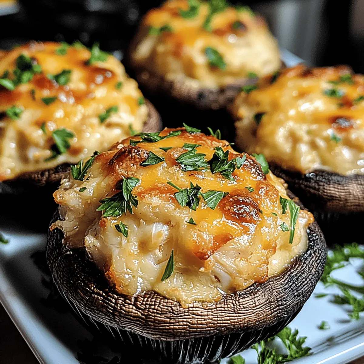 Once out of the oven, let your Crab Stuffed Mushrooms cool for a few minutes before serving. Optionally, garnish with additional herbs or a sprinkle of lemon zest for a fresh touch. These delightful morsels are best enjoyed warm, making them a perfect appetizer for any gathering or just a special treat for yourself!