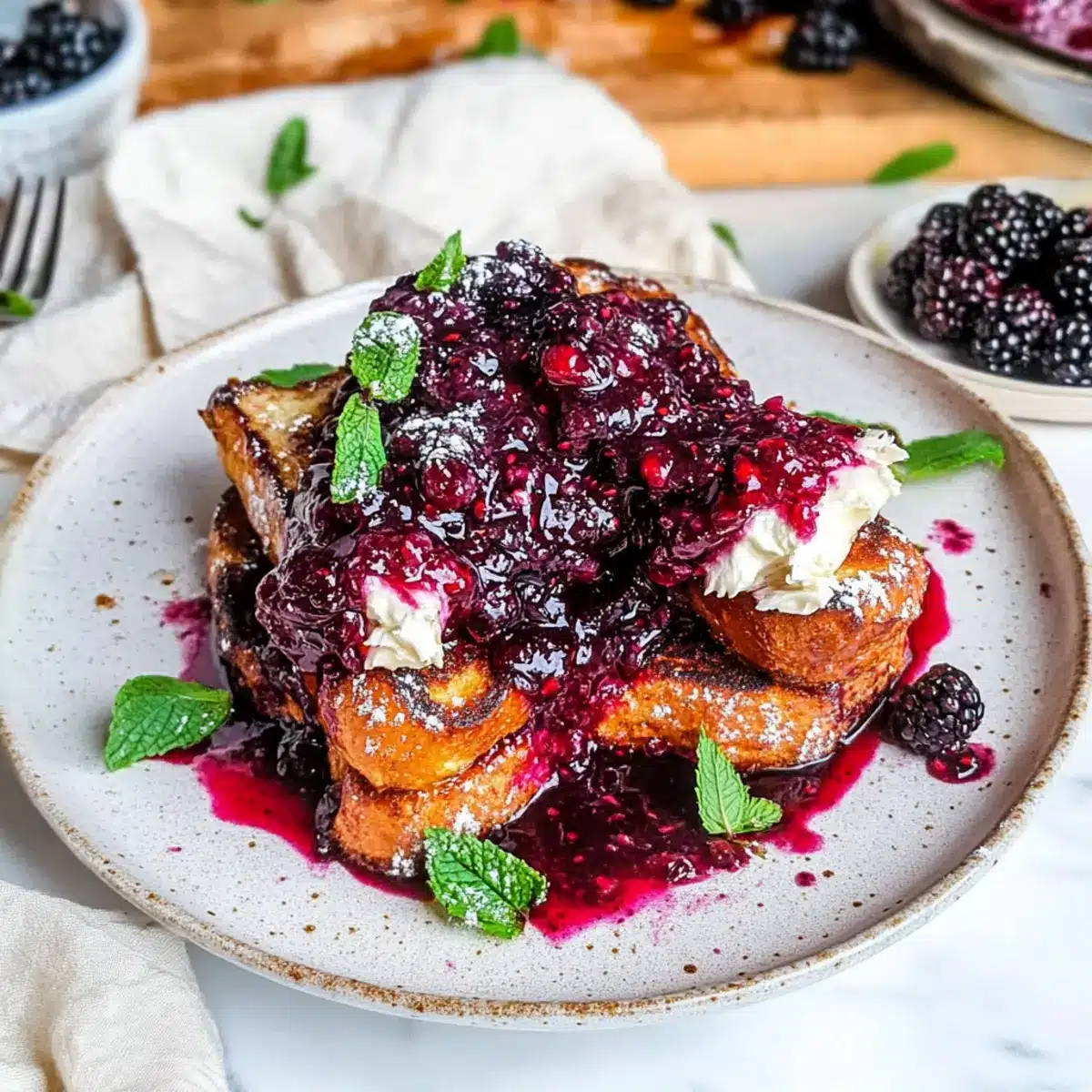 Cream Cheese Stuffed Blackberry Compote French Toast Bliss