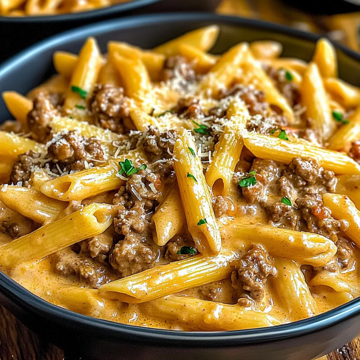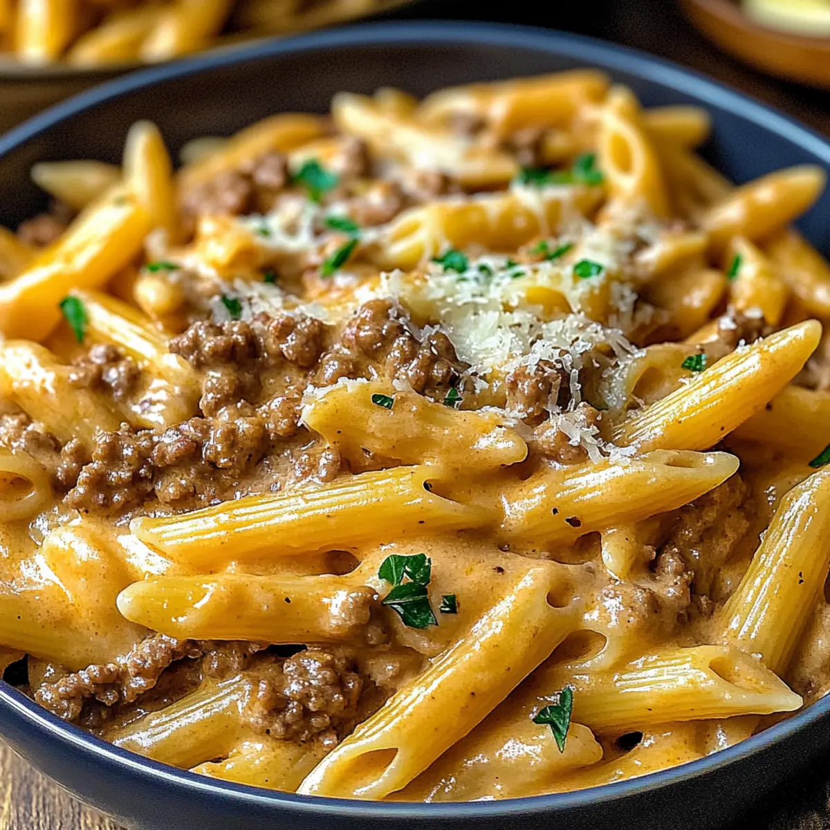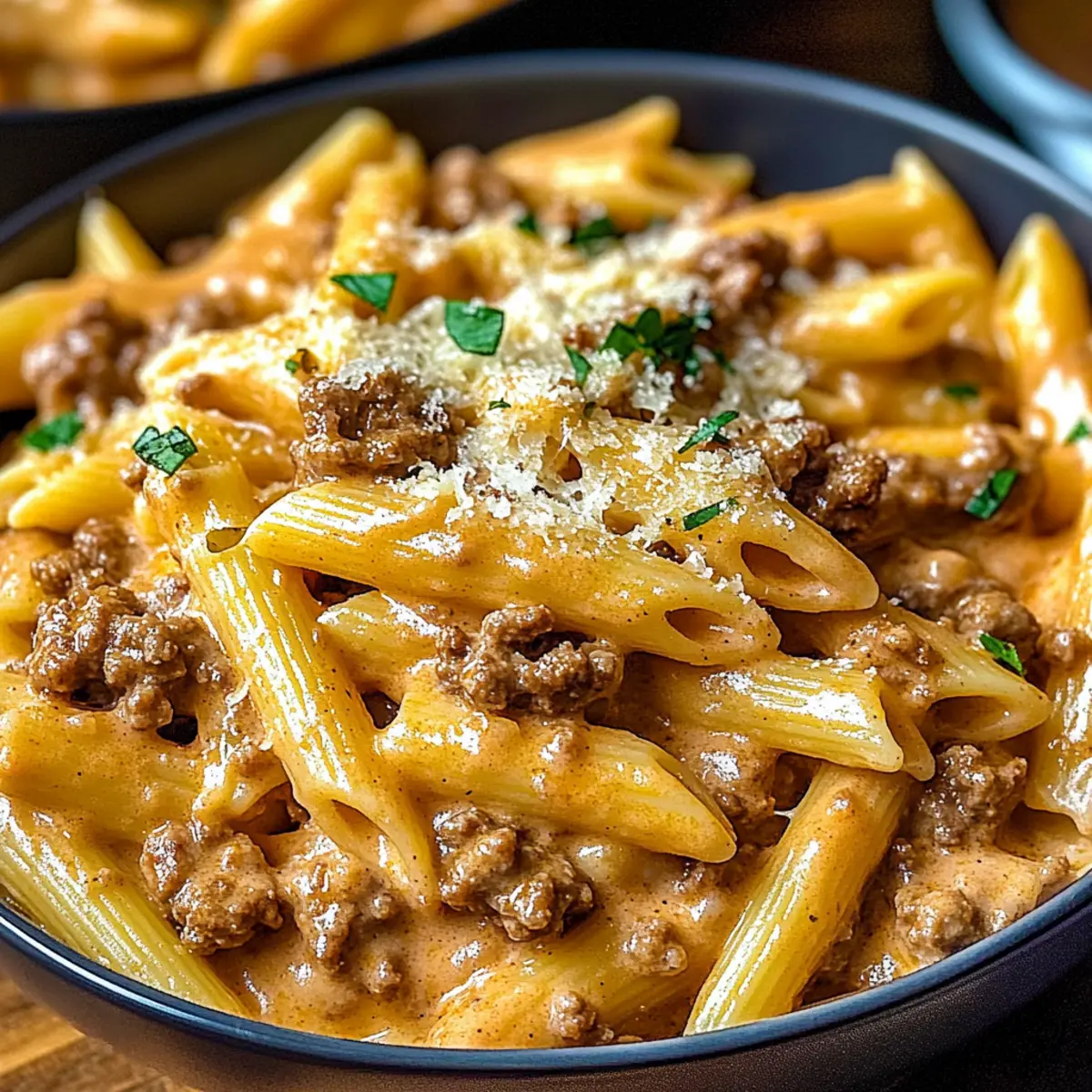 Serve your creamy beef pasta hot, plated in generous portions. For a finishing touch, sprinkle extra Parmesan cheese on top or garnish with freshly chopped parsley if desired. This comforting dish is sure to warm your soul and make your dinner a delightful experience!