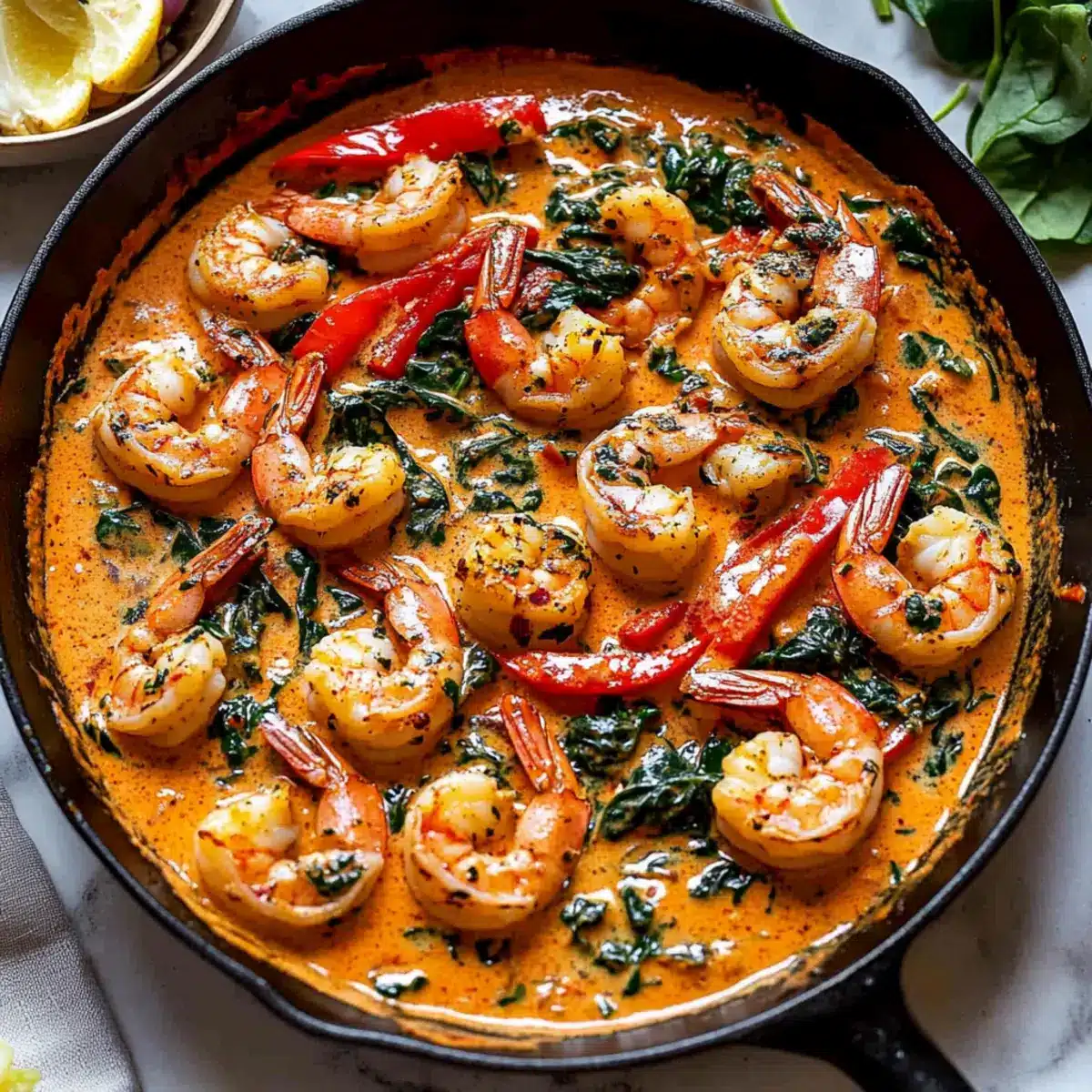 Start by patting the shrimp dry with a paper towel, which helps achieve a nice sear. Season them generously with 1/2 teaspoon of sea salt and 1/4 teaspoon of black pepper. This flavorful base is essential for your Creamy Garlic-Paprika Shrimp Skillet.