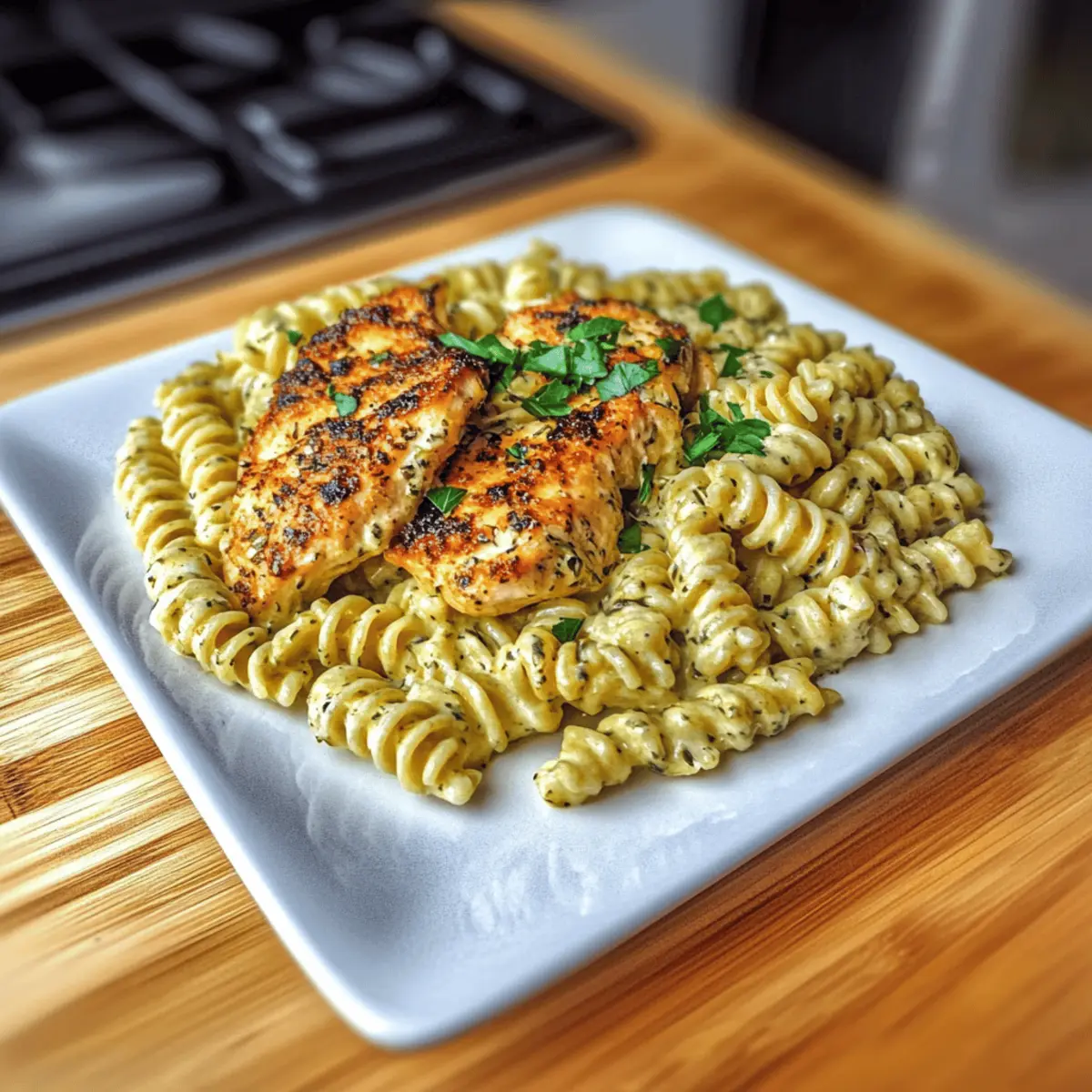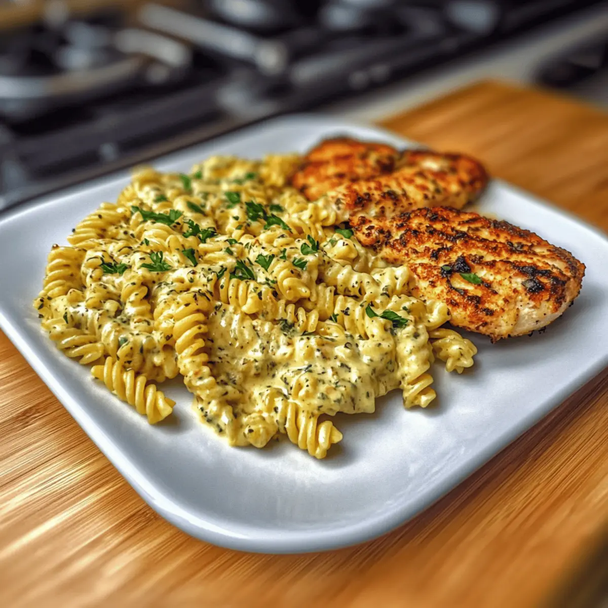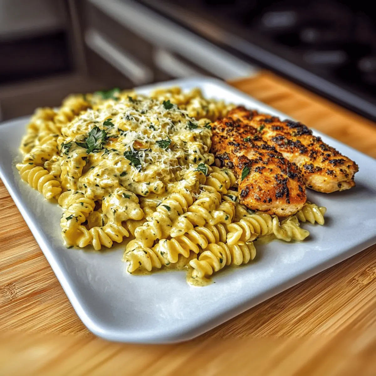 • Twisted Pasta (Fusilli) – Holds the creamy sauce perfectly, but feel free to substitute with penne or rotini.