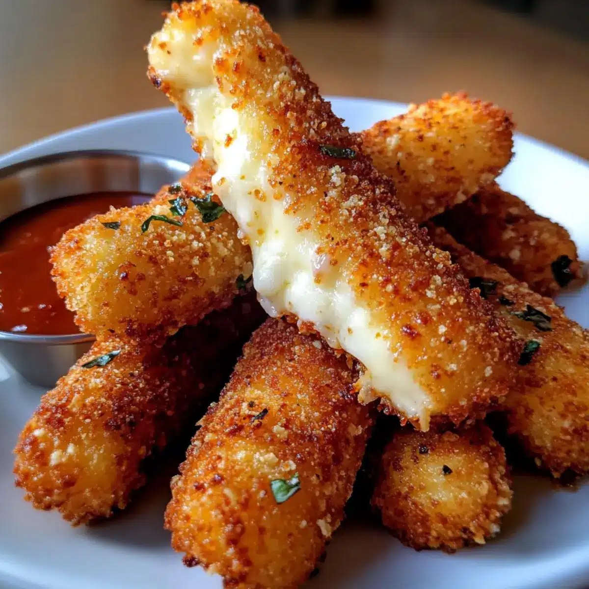 Balsamic Reduction Dip: Instead of marinara, try a balsamic reduction for dipping. Its sweet tang complements the cheese perfectly and adds a gourmet touch!
