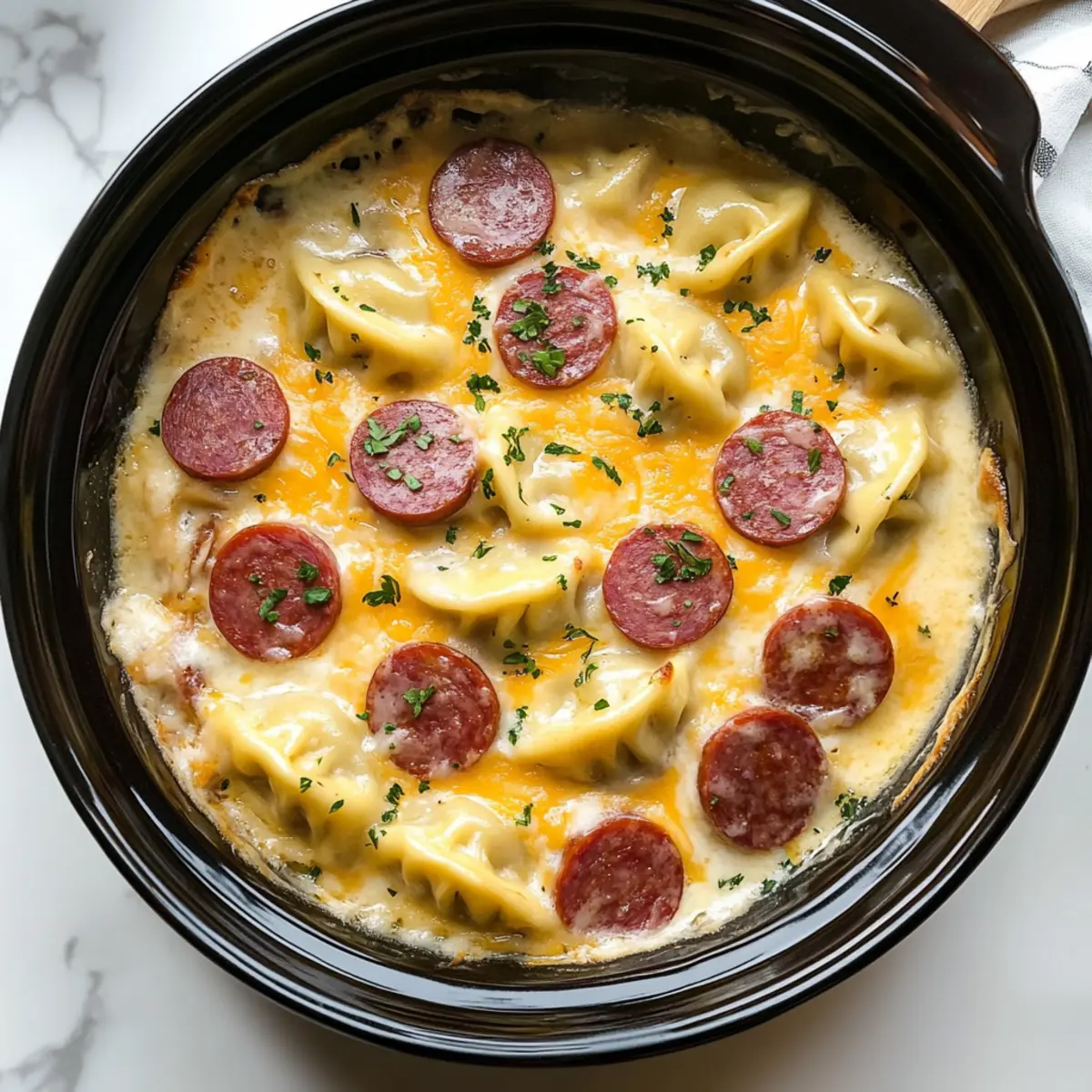 Comforting Crockpot Pierogi Casserole with Kielbasa Delight
