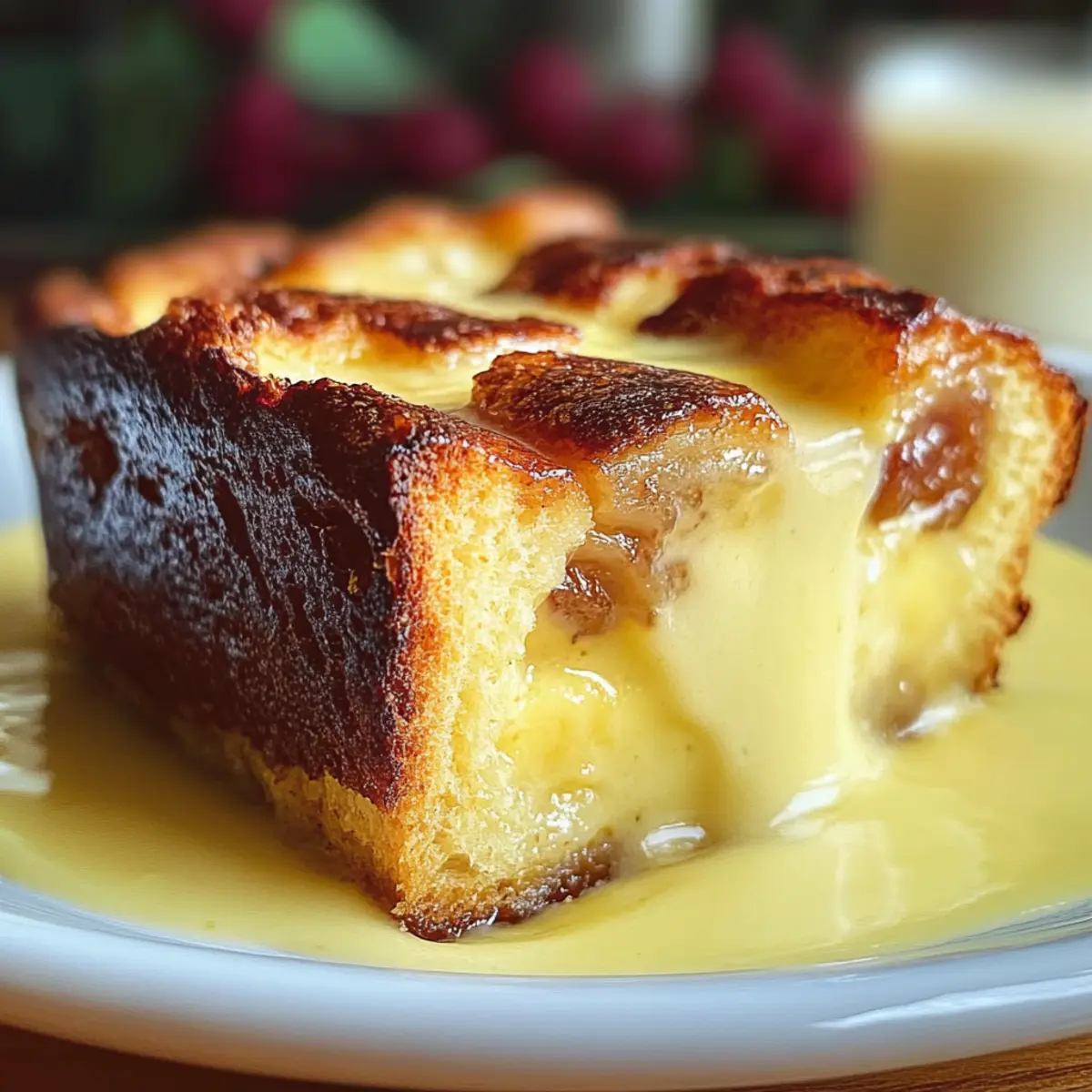 As I pulled the Custard Bread Pudding from the oven, the golden crust glistened invitingly, promising a soul-soothing treat. This dessert is a comforting embrace on chilly nights and is effortlessly customizable, perfect for baking enthusiasts eager to add their favorite mix-ins like chocolate chips or nuts. With a luscious, creamy interior paired with a warm vanilla sauce, this pudding is not just a dish but a sweet memory waiting to happen. Ideal for cozy gatherings or festive celebrations, it brings everyone together with its heartwarming flavors. Trust me, your friends and family will be asking for seconds! What creative twist will you put on this classic dessert?