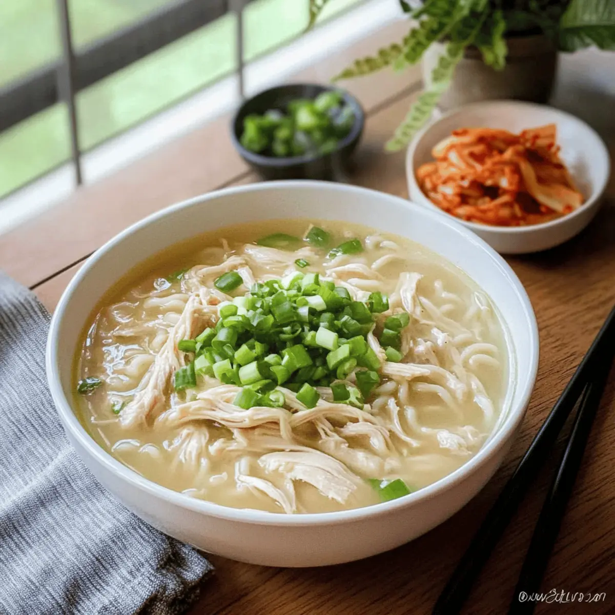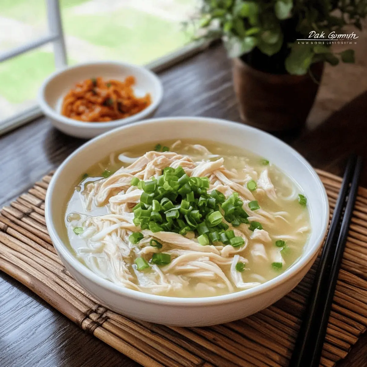 Comforting, this Korean Chicken Soup wraps you in warmth, making it perfect for chilly days. Simple preparation means you can whip it up quickly, even on busy weeknights. Customizable with your choice of noodles or rice, it easily adapts to any palate. Wholesome ingredients like fresh garlic and tender chicken create a nourishing meal that everyone will love. Crowd-pleasing, it’s ideal for family dinners or impressing guests. Get ready to savor the heartwarming goodness of Dak Gomtang that will have your loved ones asking for seconds!