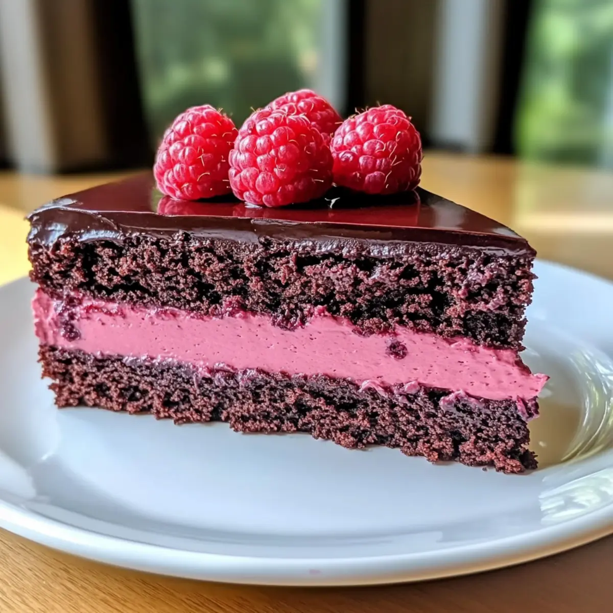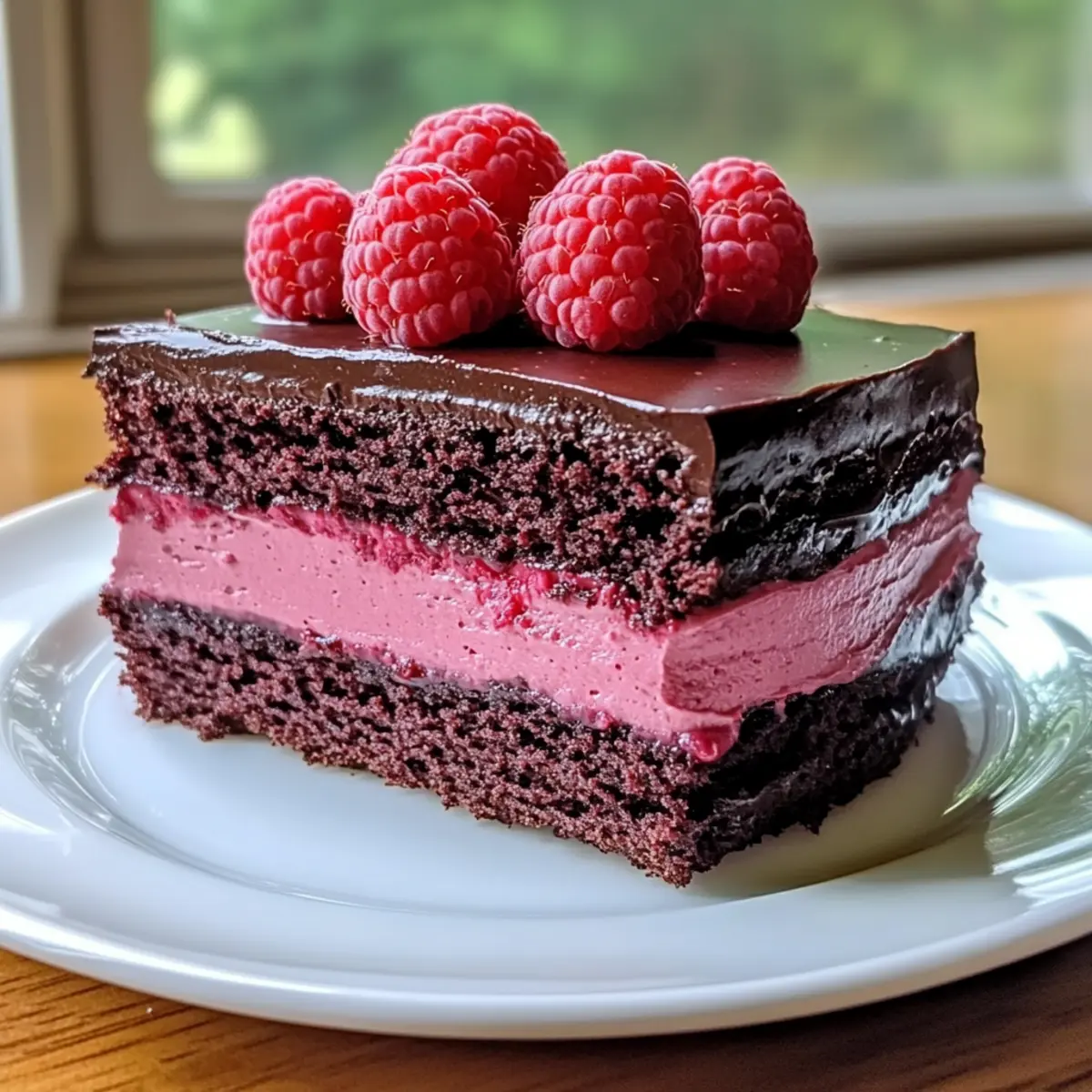- Slice the cooled cake horizontally and layer with raspberry mousse. Chill for 1 hour.