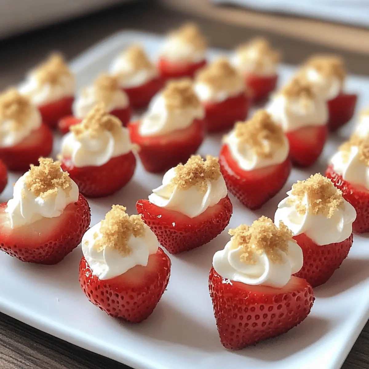 To add the final touch, sprinkle a teaspoon of graham cracker crumbs on top of each filled strawberry. This will provide a delightful crunch that mimics a traditional cheesecake crust. Ensure even coverage for a beautiful presentation, making these deviled strawberries look as delicious as they taste.