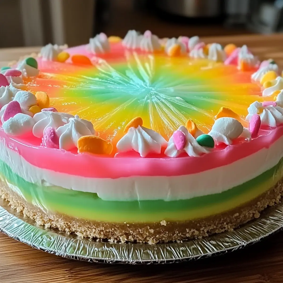 Before serving your beautiful Easter No Bake Jello Pie, top it with a layer of whipped topping, and feel free to add some colorful Easter candies or sprinkles for a delightful finishing touch. This vibrant decoration enhances the festive spirit, ready to brighten your holiday gathering!