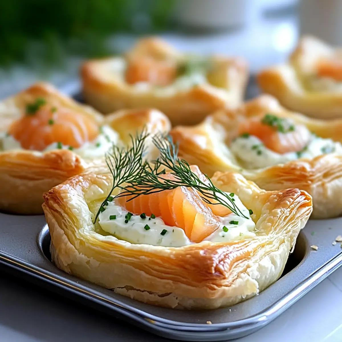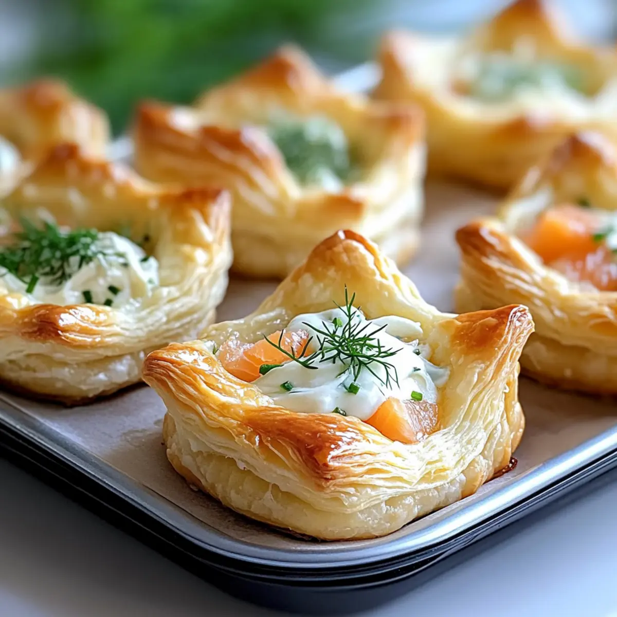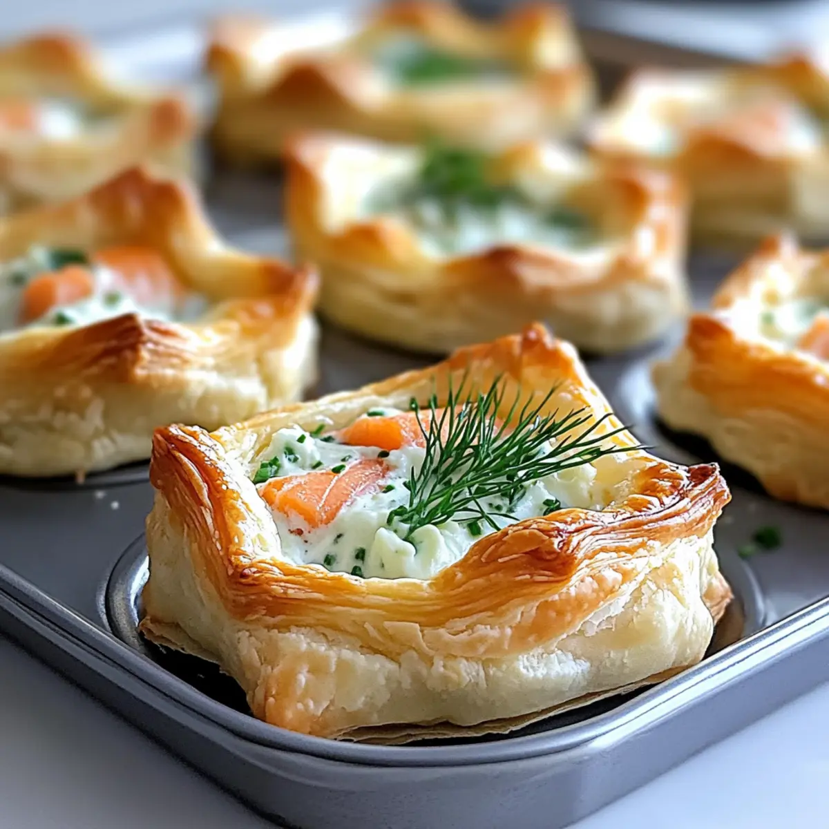 Preparing the Elegant Smoked Salmon Puff Pastry in advance is a fantastic way to save time and reduce stress during your Easter brunch! You can assemble the pastry cups up to 24 hours in advance; simply prepare the puff pastry and mold it into the muffin tin without the filling. Cover the assembled cups with plastic wrap and refrigerate to keep them fresh. The filling can be mixed and stored in an airtight container for up to 3 days, ensuring all flavors meld beautifully. When ready to serve, fill the pastry cups with the smoked salmon mixture and bake them just before guests arrive for a delightful, freshly baked treat that maintains its flaky texture. You’ll have all the elegance and taste with none of the last-minute hassle!