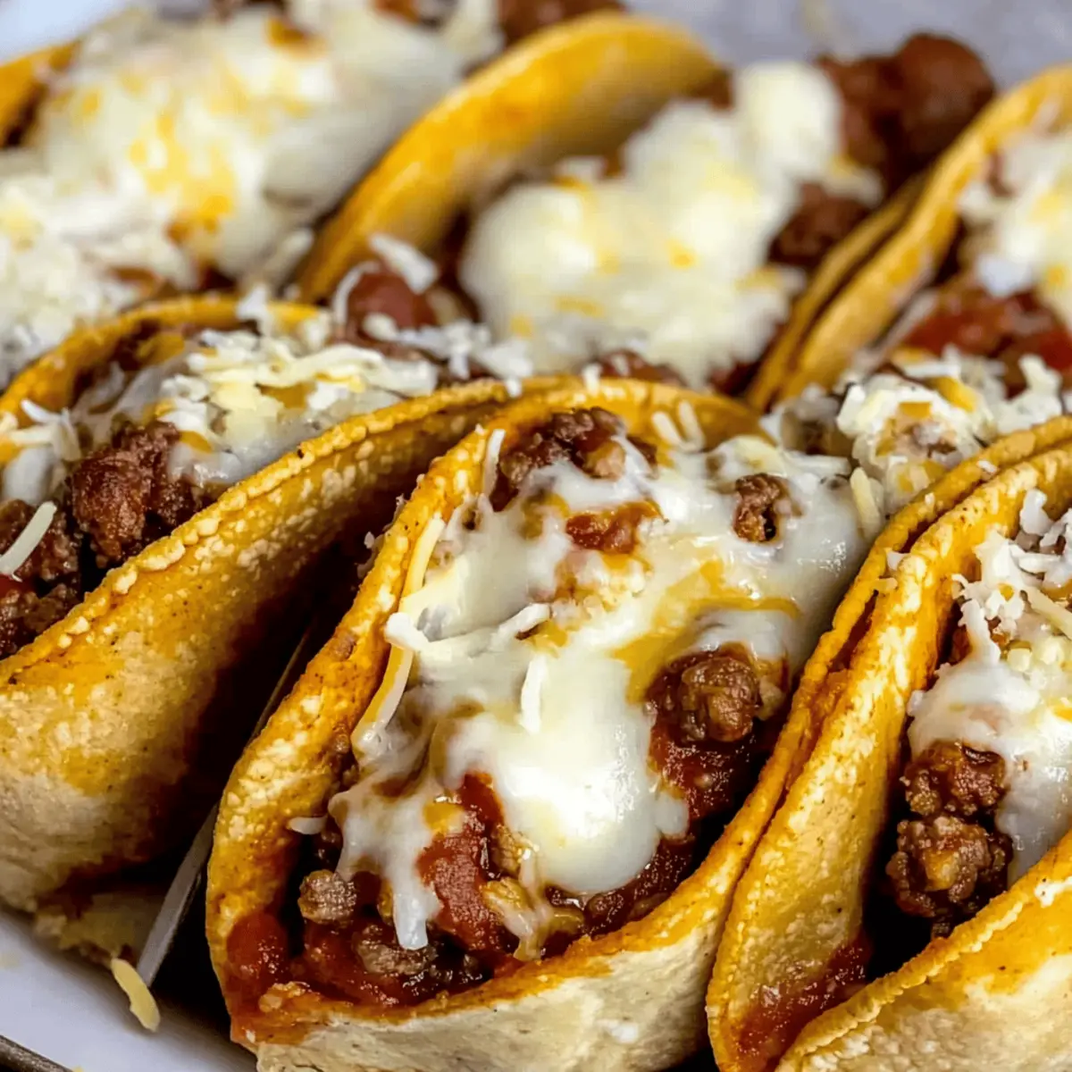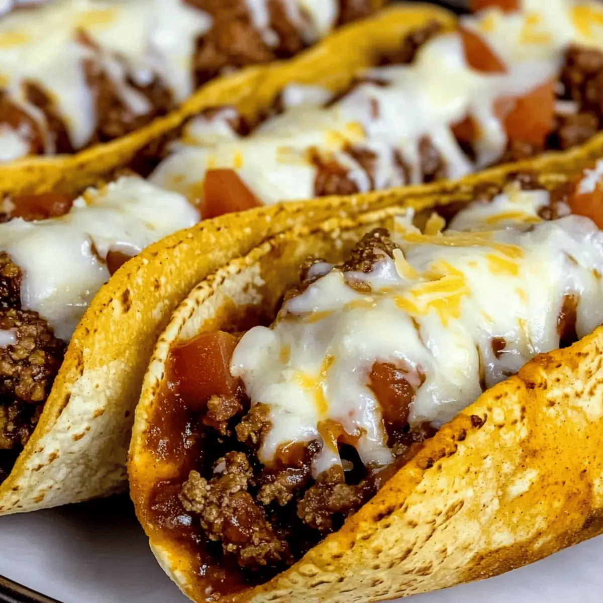 - Fill each warmed shell with seasoned ground beef and layer on shredded cheese.