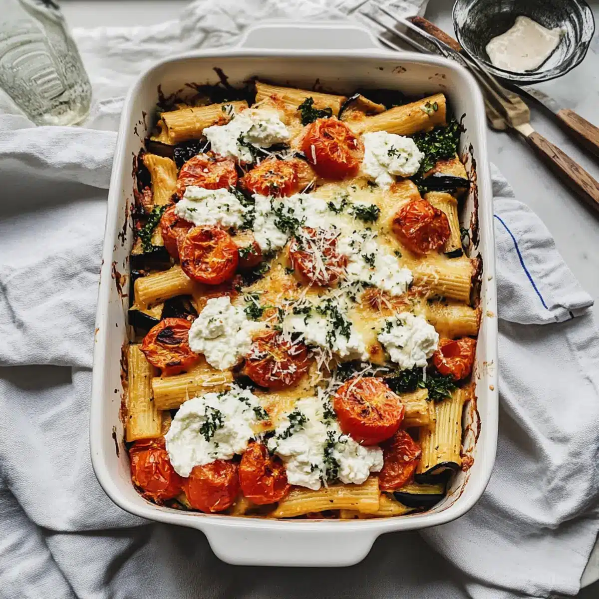 Experiment with Cheese: Don’t hesitate to mix in different cheeses, like goat cheese or mozzarella, to elevate the flavors in your Eggplant Pasta Bake with Tomato & Zucchini.
