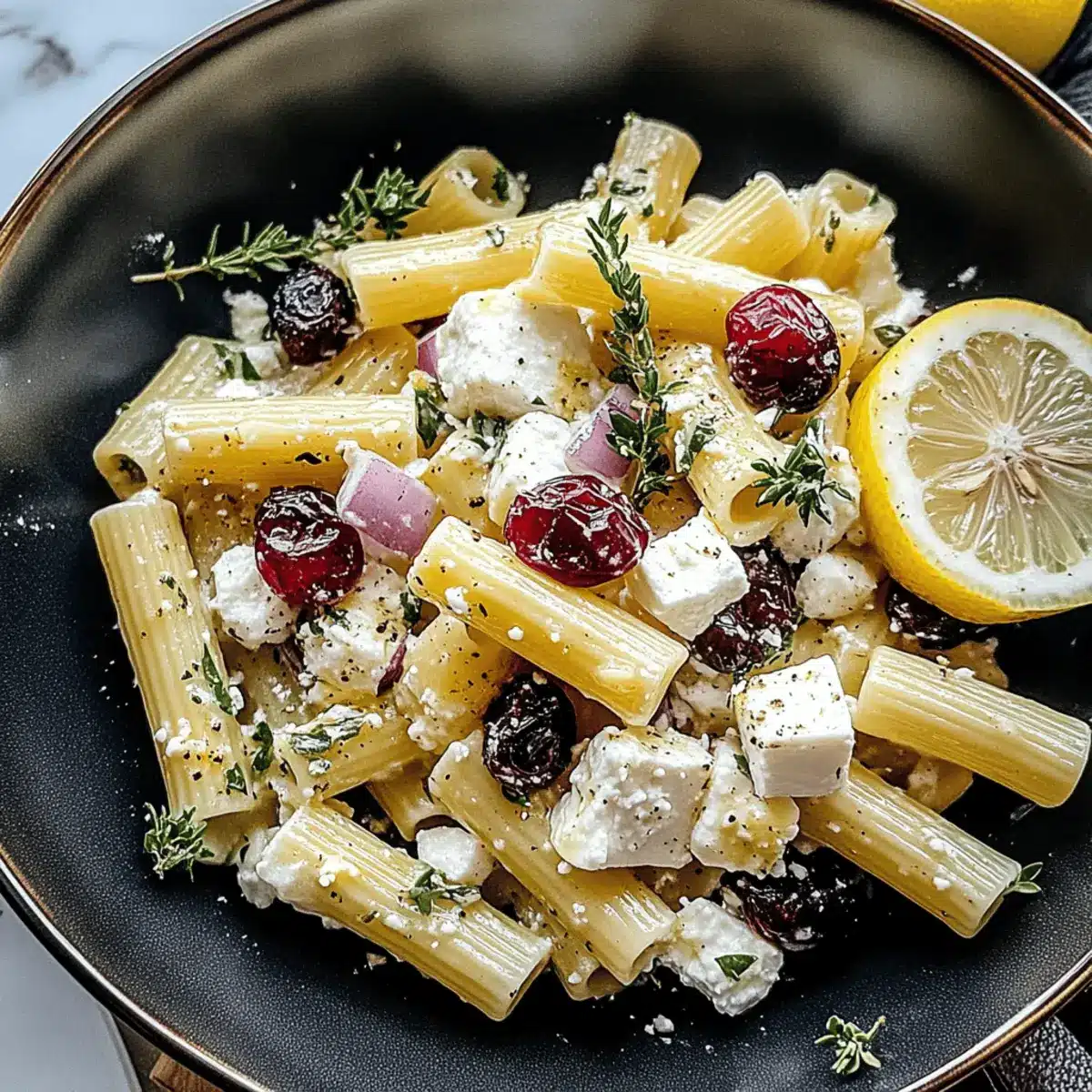Feta & Cranberry Rigatoni Salad with Zesty Lemon Vinaigrette