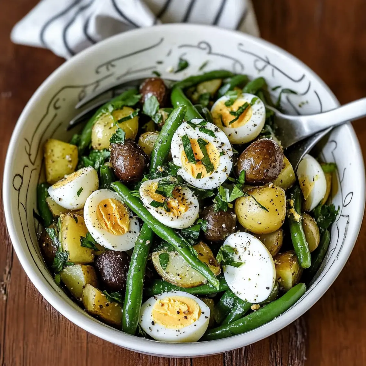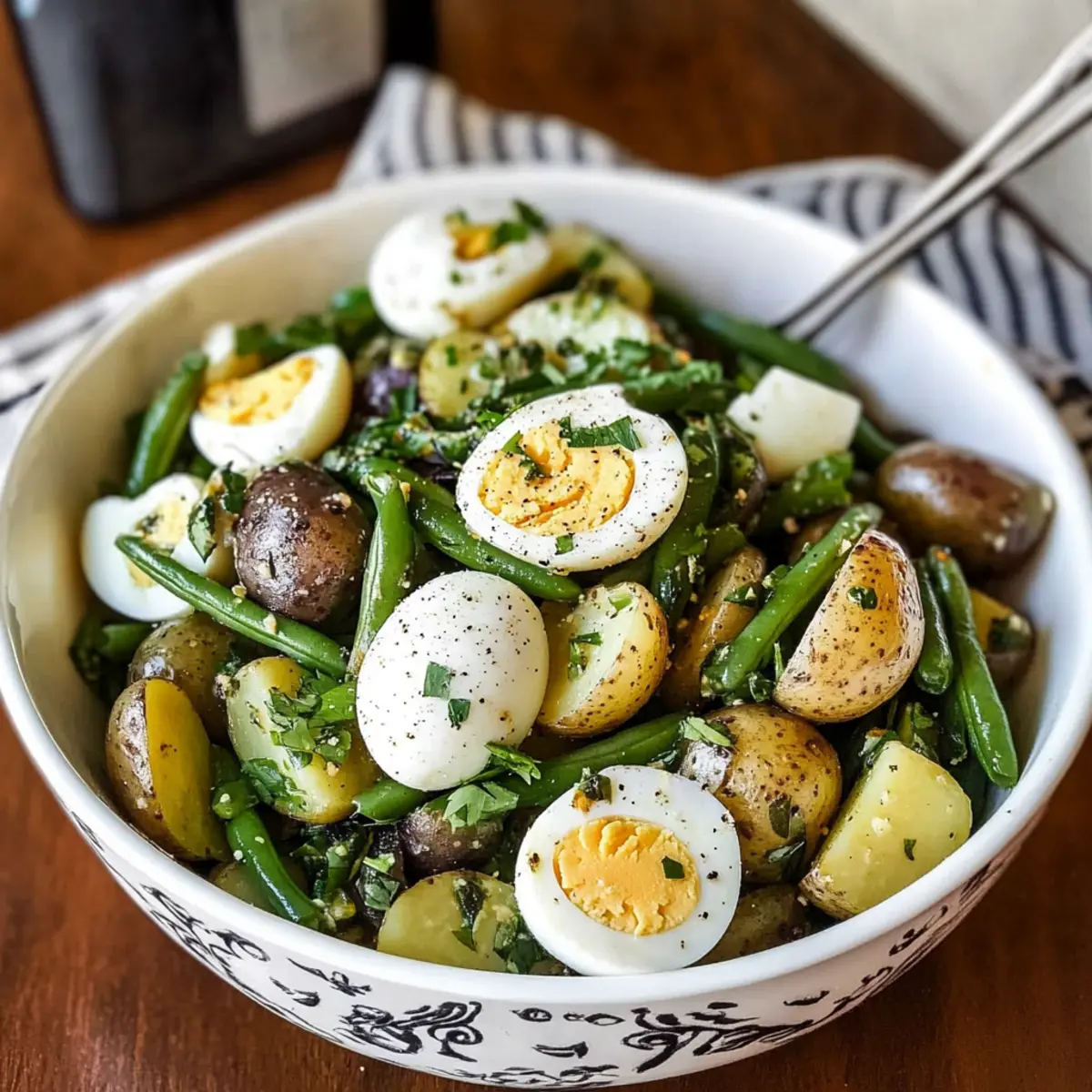 Vibrant Flavors: The refreshing combination of new potatoes, green beans, and hard-boiled eggs delivers a burst of Mediterranean goodness in every bite.