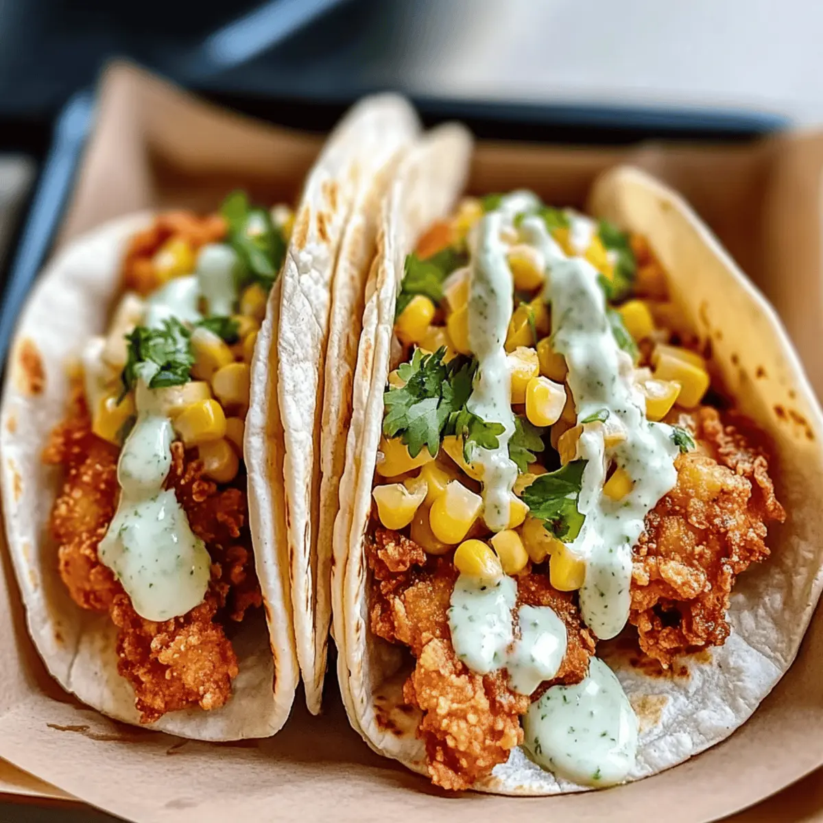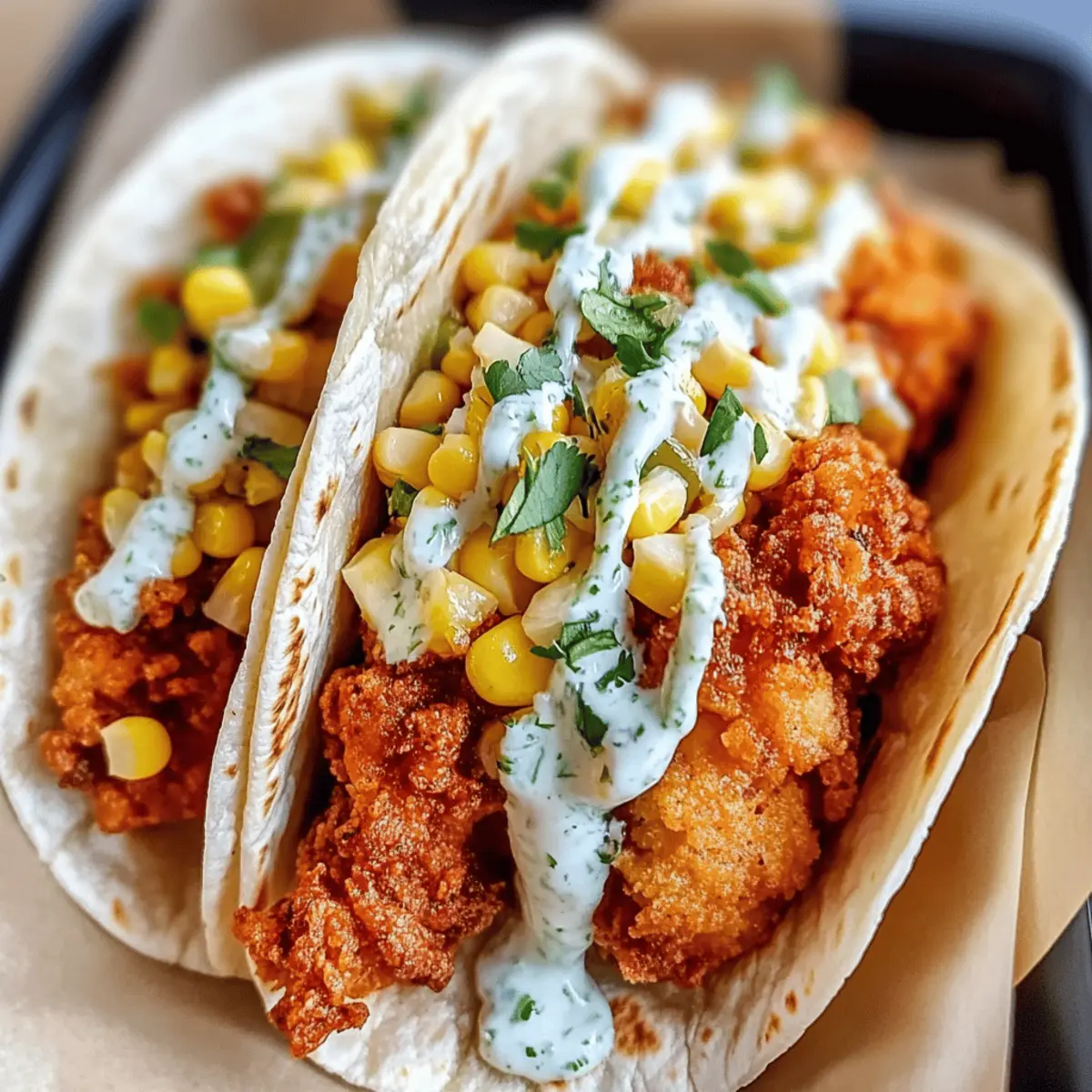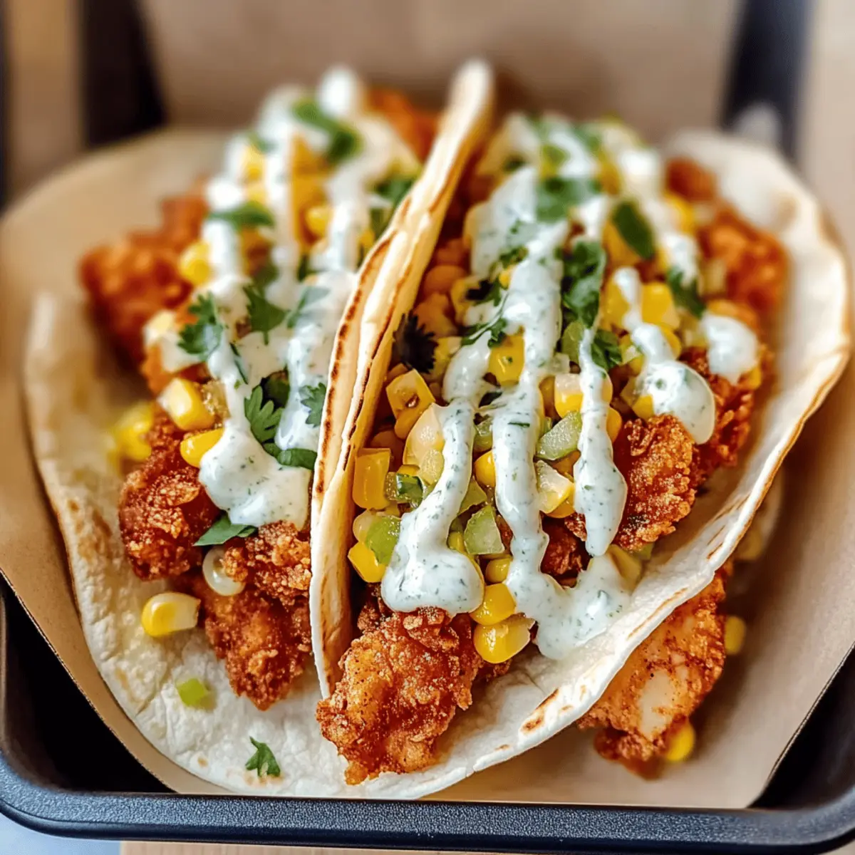 Crispy Fried Chicken Street Corn Tacos with Jalapeño Lime Ranch